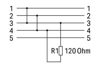 Terminaison RS-422/485 - 5 pôles - M12 mâle droit - M12 femelle droit