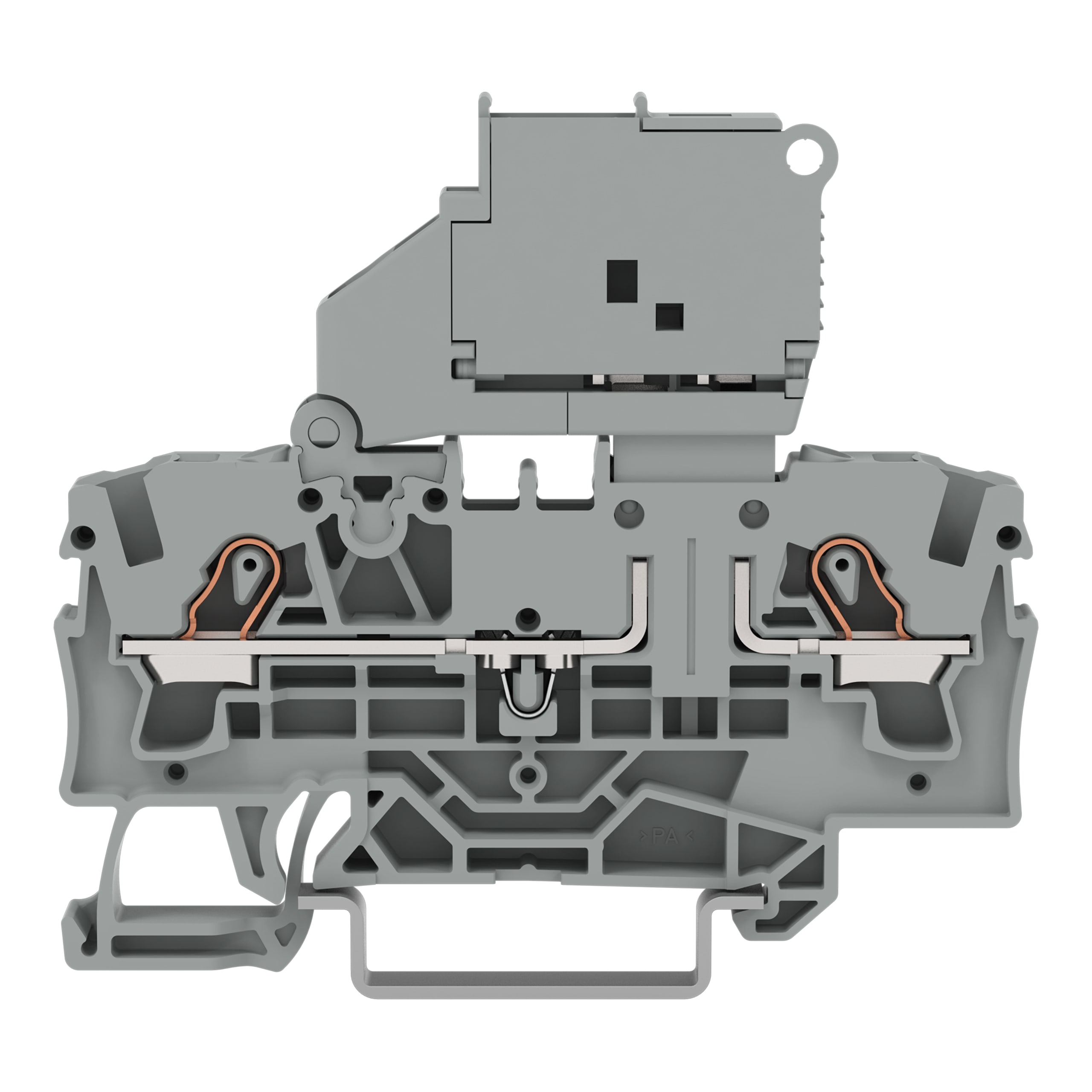 Borne à fusible pour 2 conducteurs avec porte-fusible pivotant; gris