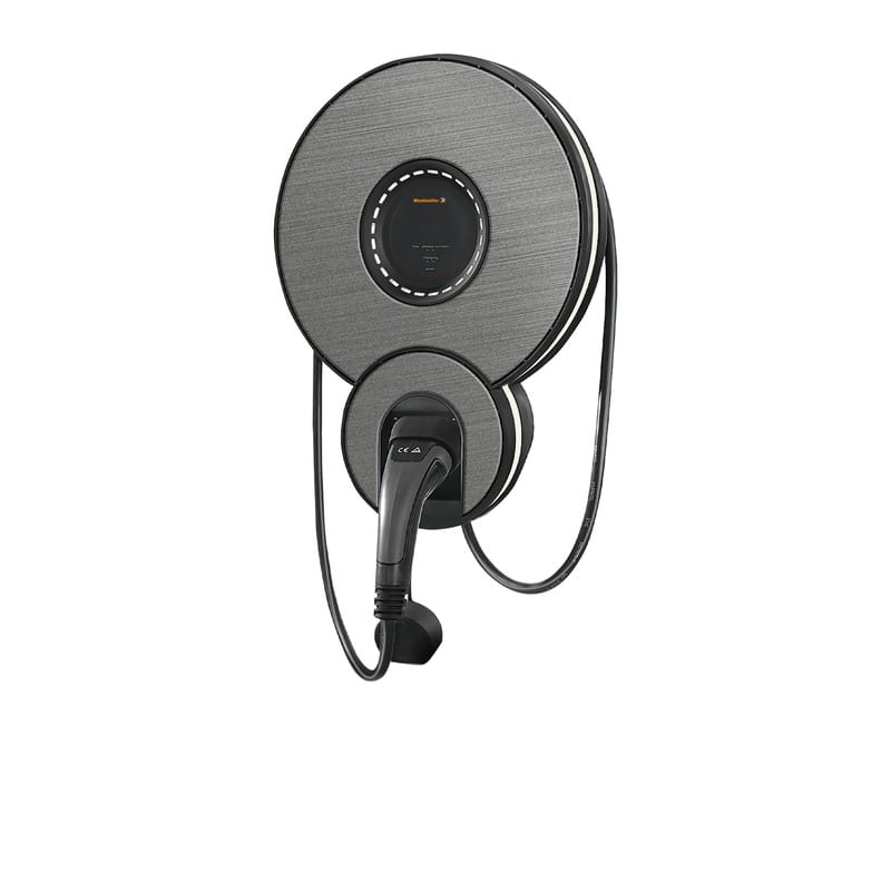 Boîtier mural AC mode 3 HOME Premium d'une capacité de charge maximale de 22 kW pour un raccordement au réseau triphasé (400 V), courant de charge maximal de 32 A, avec câble de 5 m et fiche de type 2, détection de courant résiduel de 6 mA intégrée, entrée numérique et communication Modbus RTU, lecteur RFID pour l’authentification utilisateur, boîtier robuste IP54, anneau LED bien visible pour l'indication de l'état, plateau de câbles et de prises intégré pour une position de stationnement sûre
