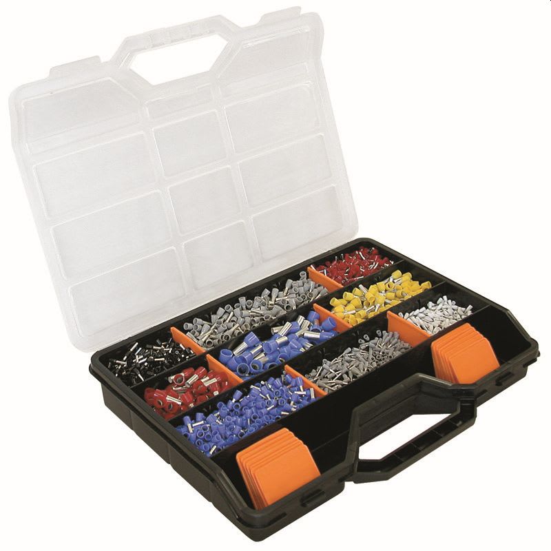 Embouts dans ses boîtes en plastique avec couvercle transparent pivotant.