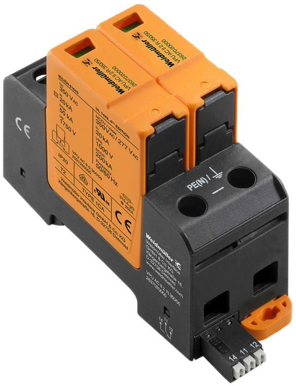 Dispositif de protection contre la foudre et la surtension pour l'ingénierie électrique et l'alimentation. Le dispositif doit être installé près de l'alimentation du système à protéger.