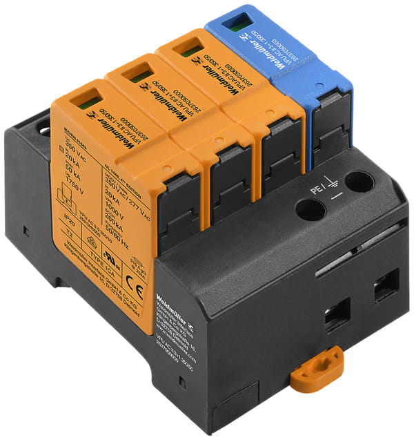 Dispositif de protection contre la foudre et la surtension pour l'ingénierie électrique et l'alimentation. Le dispositif doit être installé près de l'alimentation du système à protéger.