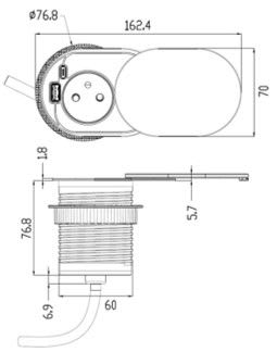 Xeta - COOLIX - Prise encastrable noire a clapet coulissant et 2 USB - 110122B