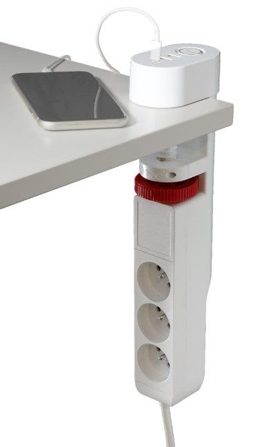 Ce bloc multiprise à fixer manuellement permet d’ajouter discrètement et en toute simplicité 3 prises de courant ainsi que 3 ports USB de recharge au plan de travail d’une cuisine ou à un bureau.