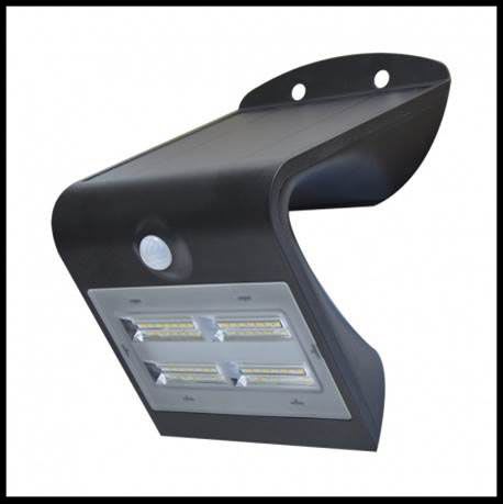 Projecteur LED solaire mural 3,2W noir - IP65 - 3000K-3000K - 400 lm - 3 modes de fonctionnement au choix - Batterie remplaçable