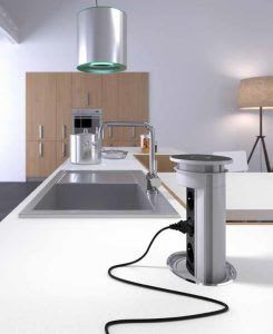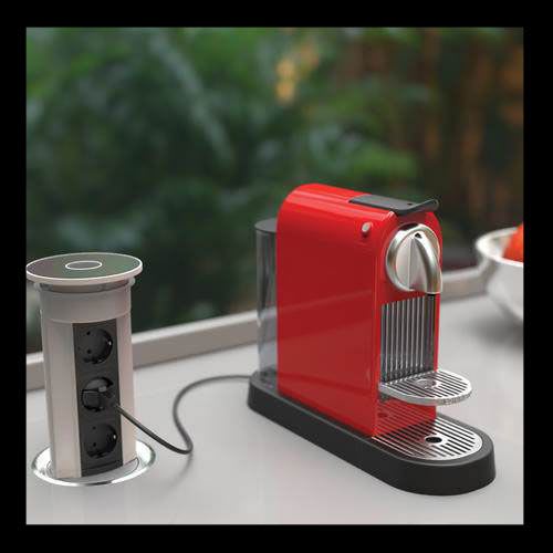VERSAELITE - tour multiprise extractible 3 prises - Coloris Gris - Touche superieure tactile pour deverouillage electrique uniquement - Ouverture / fermeture manuelle