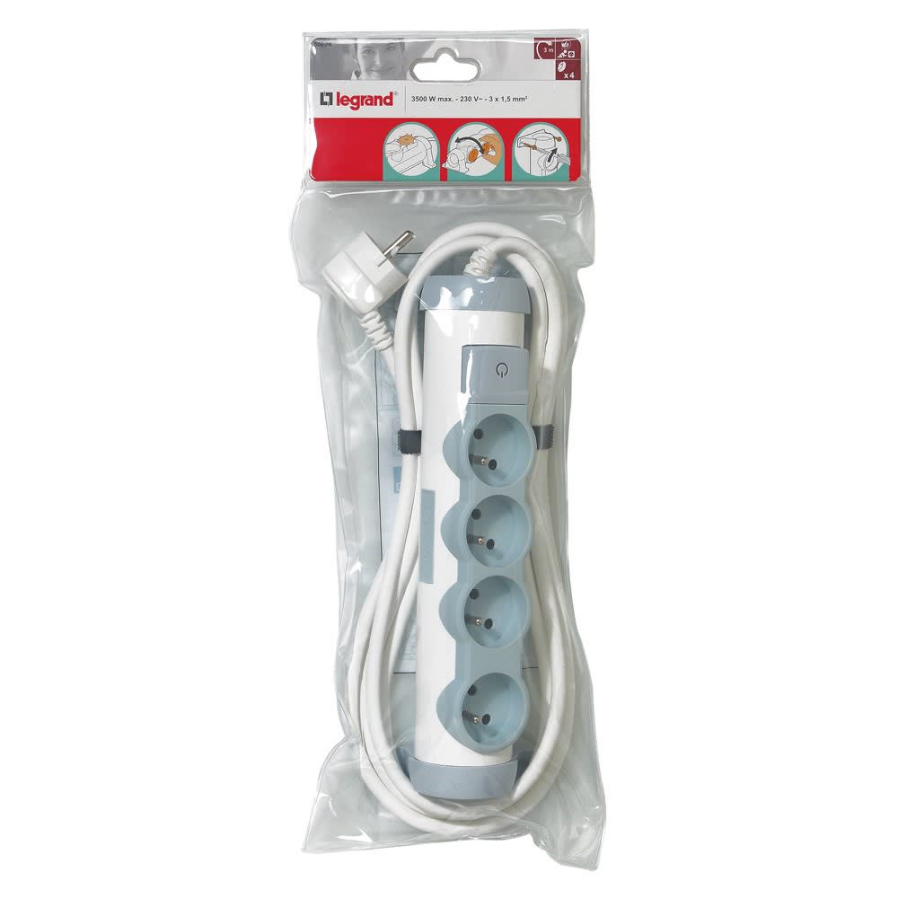 Legrand - Rallonge multiprise confort - bloc de prises rotatif - 4x2P+T - cordon 3 m - 050076