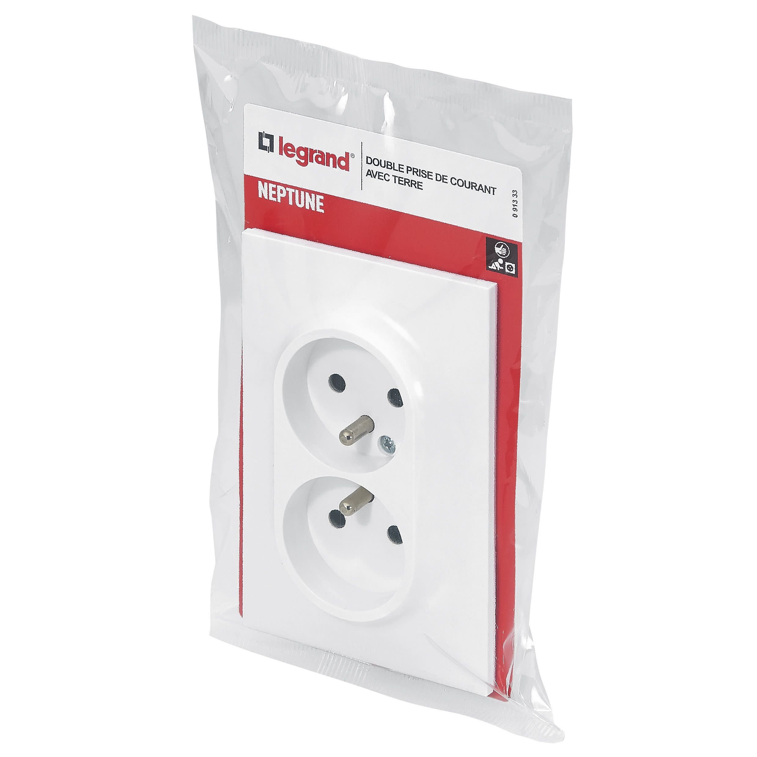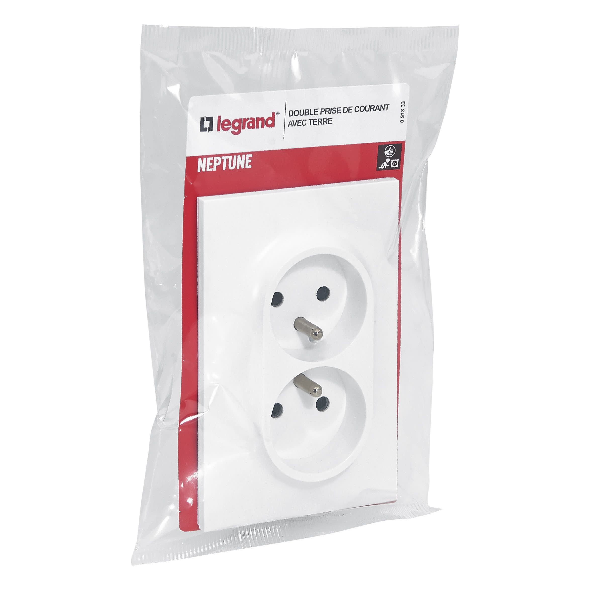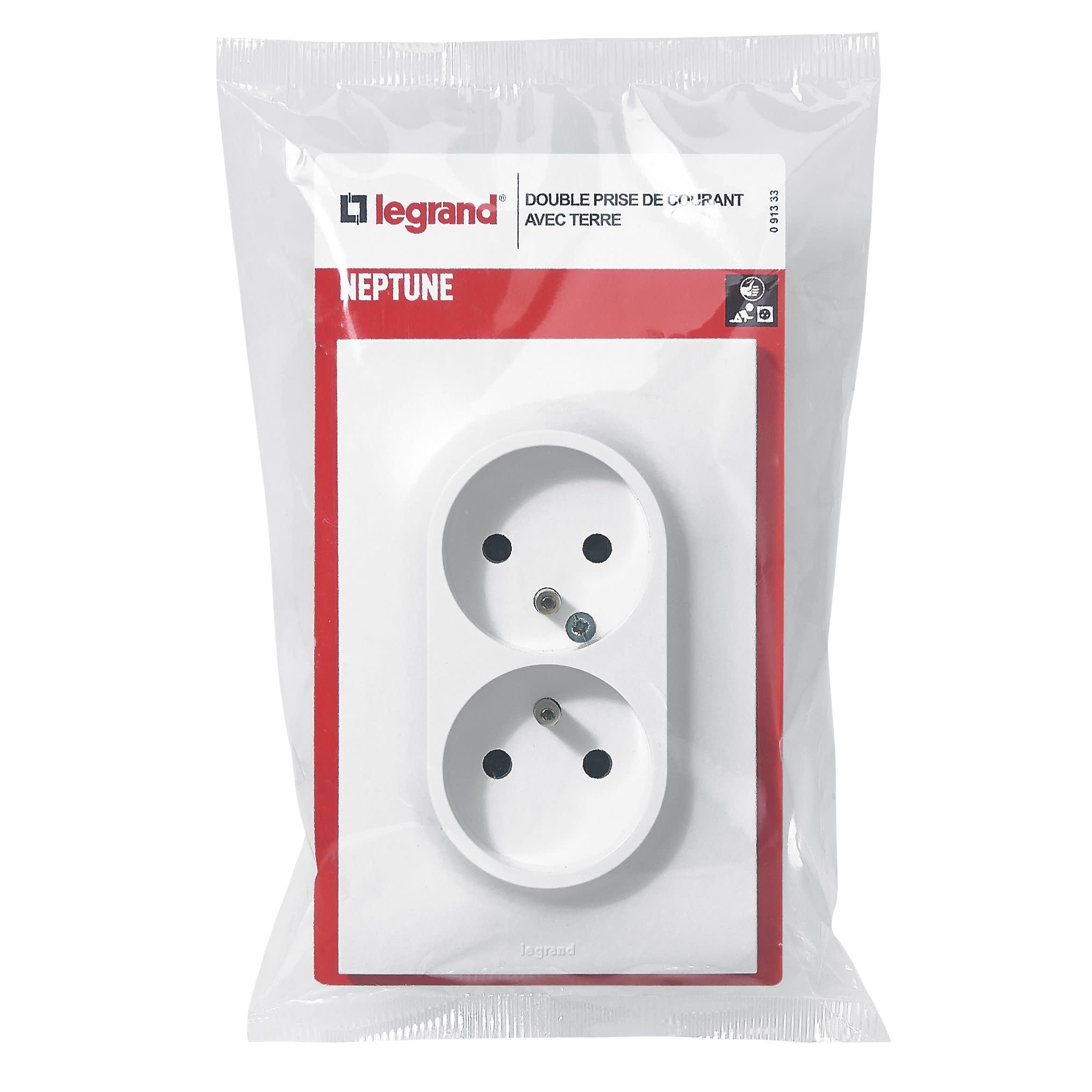 Legrand - Double prise de courant avec terre 1 poste Neptune 16A - blanc - 091333