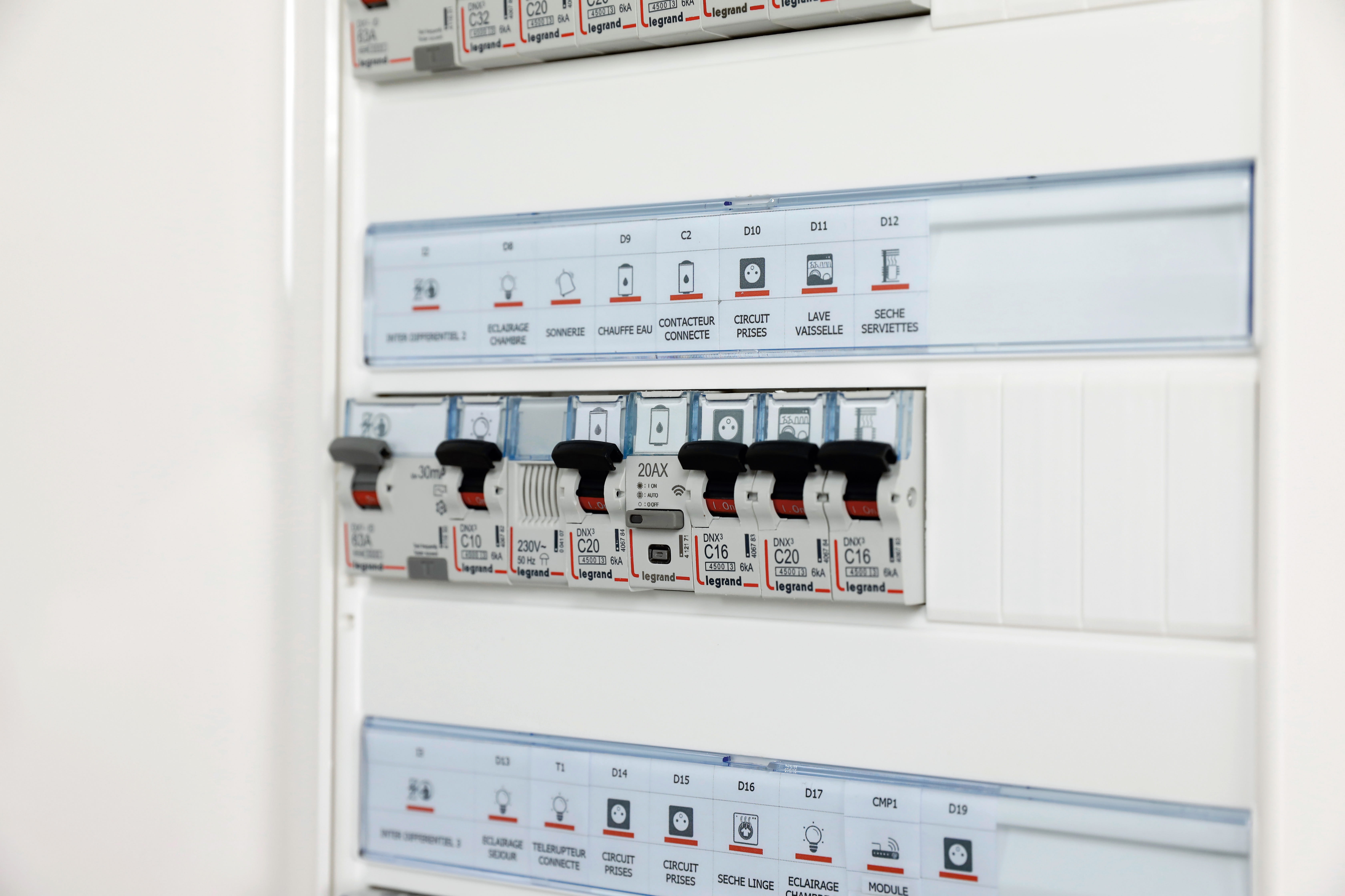 Drivia™ with Netatmo propose des produits modulaires connectés à installer directement dans le tableau électrique, compatibles avec l'application Home + Control et les principaux assistants vocaux. Ces fonctions permettent de contrôler la production et la consommation d'énergie et de réduire la facture grâce aux fonctionnalités de gestion et contrôle de l'énergie. La mise en oeuvre est simple avec un câblage classique et intuitif avec l'appairage des autres fonctions with Netatmo