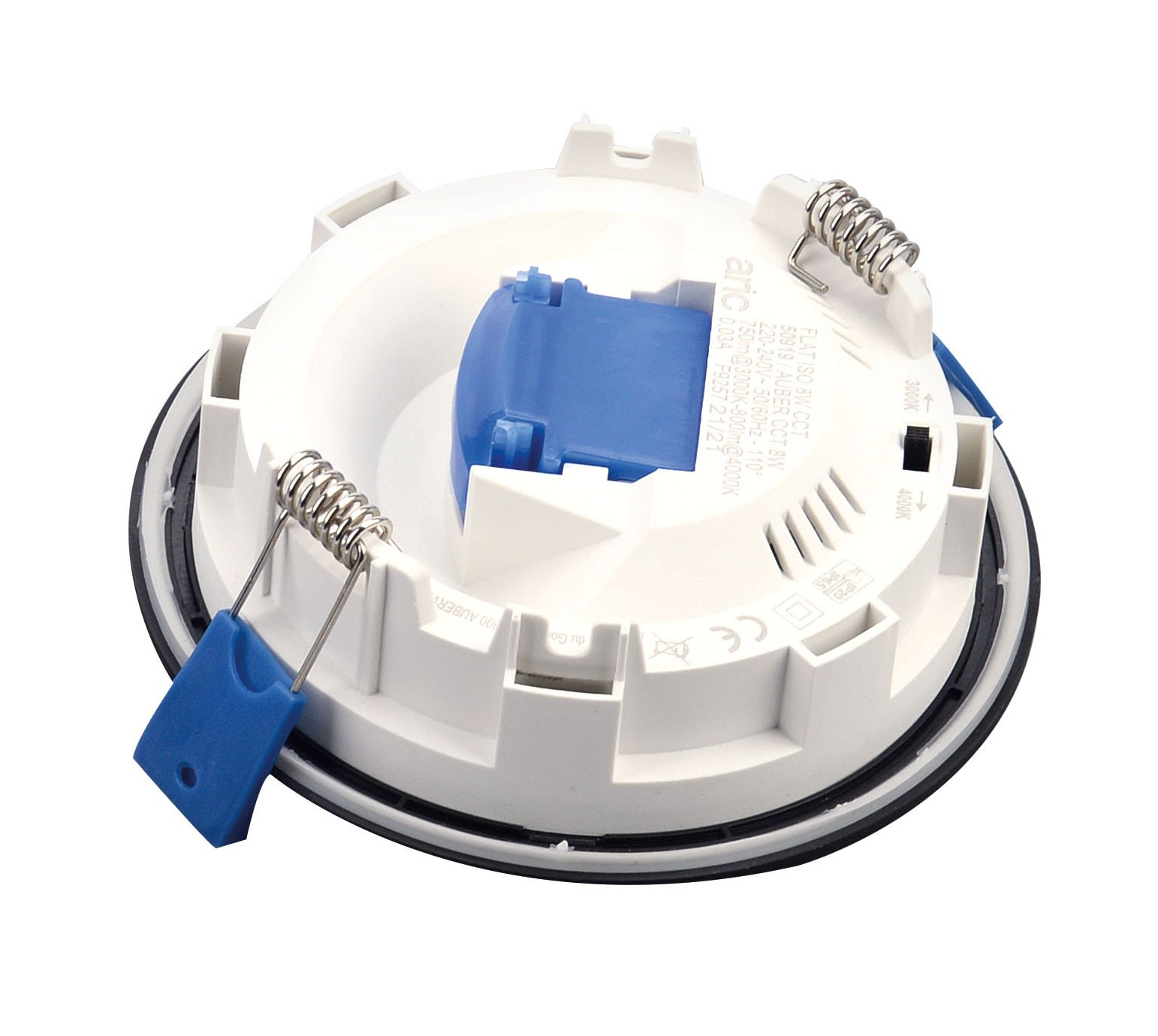 Le downlight FLAT ISO CCT 8W, 750 lumens, est la première puissance et la plus petite dimension d’encastré de la gamme FLAT ISO CCT de la marque ARIC. Disponible depuis plus de 4 ans dans la gamme de produits d’éclairage LED ARIC, les encastrés FLAT ISO CCT, sont réputés pour leur fiabilité et leur durabilité.