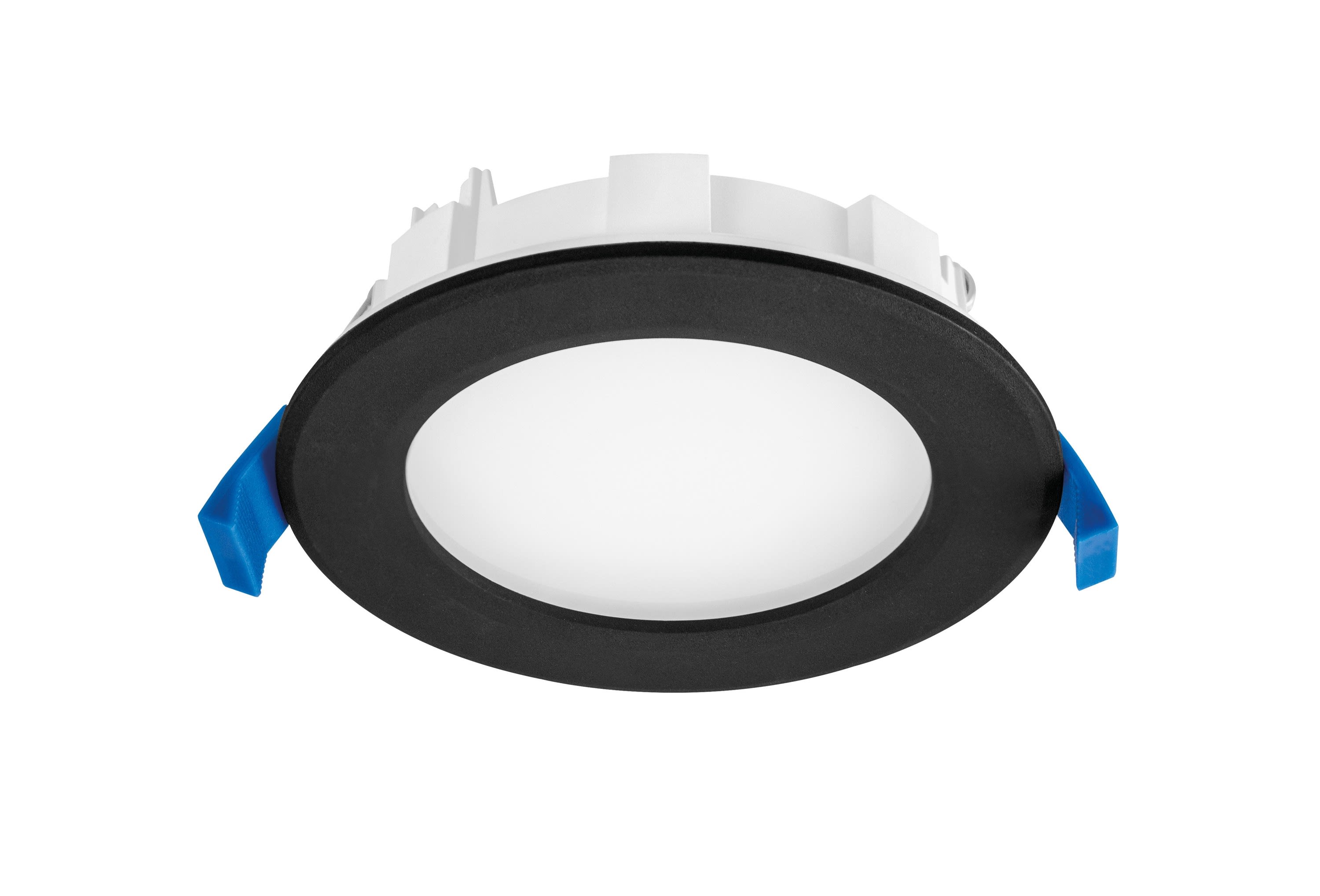 Downlight FLAT-ISO CCT IP20/65, Ø120mm, corps thermoplastique noir, recouvrable et adapté RE2020, LED 110° 8W 35000h, 750 lm, interrupteur CCT à l'arrière du spot (2700, 3000 ou 4000K)