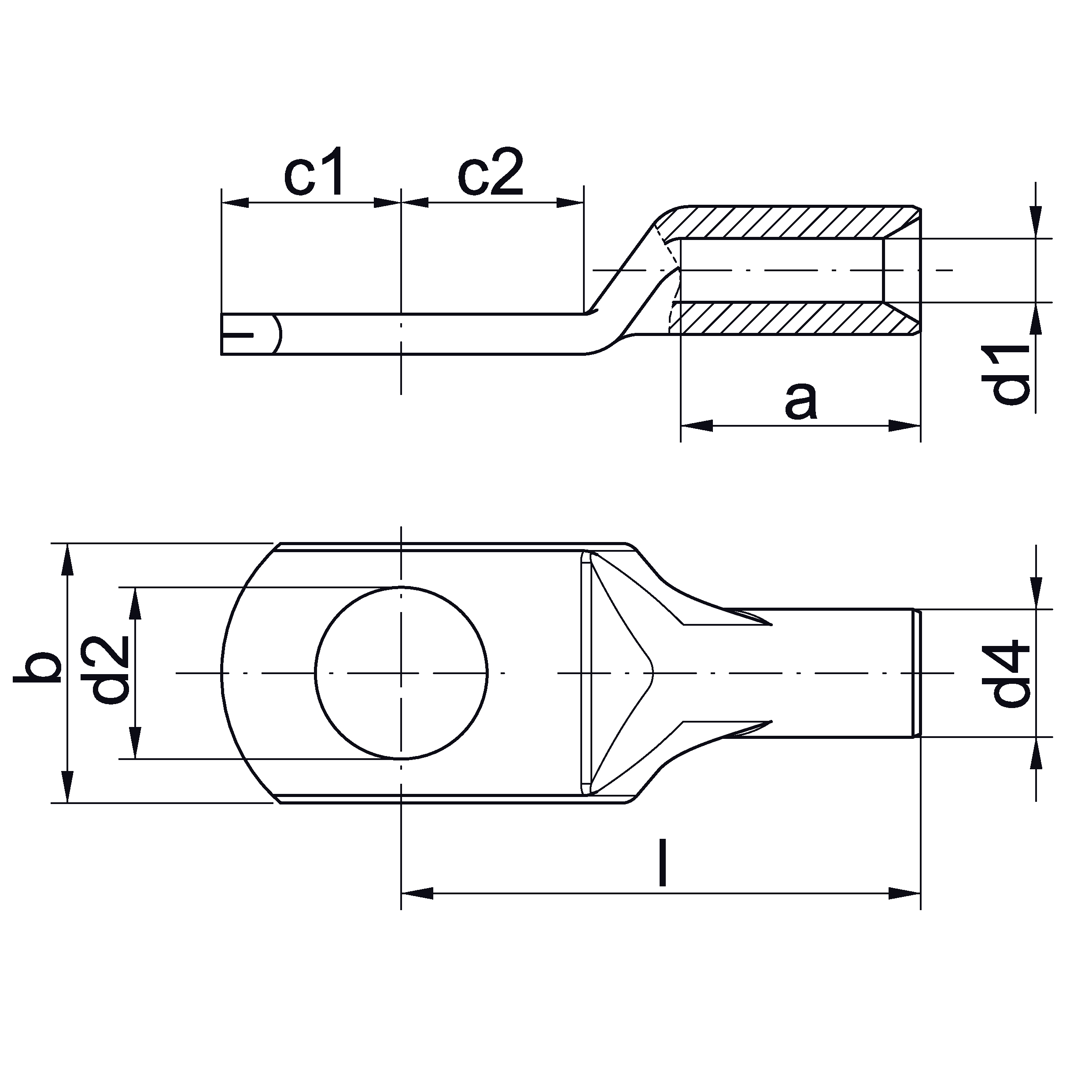 Fût chanfreiné pour faciliter l'insertion du câble. Sertissage par poinçonnage avec outils manuels, hydrauliques ou électrohydraulique. Sections disponibles de 1,5 à 95mm².