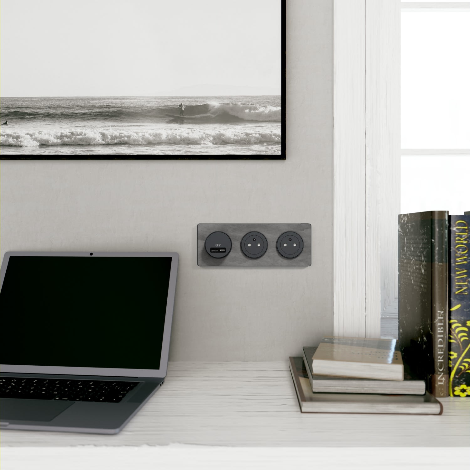 Schneider Electric - Odace Touch - plaque 3 postes horiz/ver 71mm ardoise avec liseré anthracite - S540806V