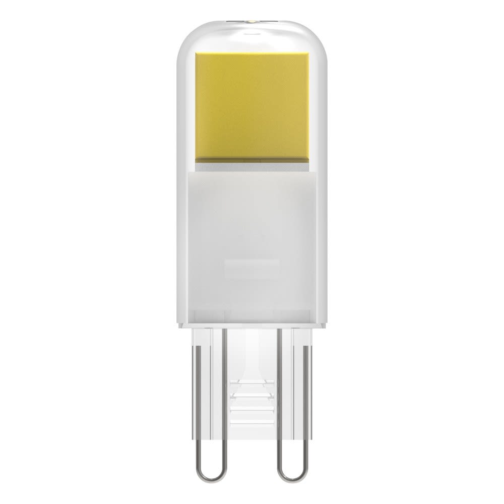 Lampes LED culot G9. Caractéristiques du produit: Alternative LED aux lampes traditionnelles 230 V. Bonne qualité de la lumière ; indice de rendu des couleurs Ra: ≥ 80; chromaticité constante. Avantages du produit: Bonne émission lumineuse. Durée de vie allant jusqu'à 15 000 heures. Idéal pour les applications décoratives et un éclairage universel. Garantie de trois ans. Consommation d'énergie inférieure à celle des lampes à incandescence ou halogènes. Zones d'application: Éclairage d'accentuation et d'ambiance dans toute la maison. Commerces, hôtels et restaurants. Utilisation en extérieur uniquement dans des luminaires d'extérieur appropriés. Conseils de sécurité: Ne touchez pas la lampe si elle est cassée.. Ne doit pas être utilisé si l'ampoule extérieure est défectueuse.. Pour garantir une efficacité lumineuse et une durée de vie optimales du produit, il est recommandé d'ôter le verre ou la vasque du luminaire..