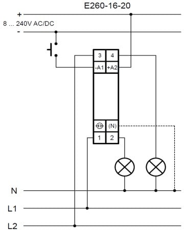 Les télérupteurs électroniques avec une tension de commande universelle de 8 à 240 V AC/DC garantissent un maximum de fiabilité, de durée de vie et un fonctionnement silencieux. La version E260C dispose d'une fonction de commande centrale intégrée (ON/OFF), qui est également réglable sur les versions E260CA.