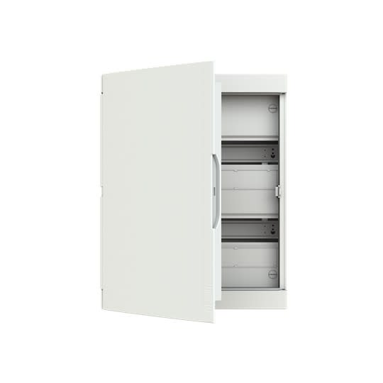 Coffret résidentiel - Fix-O-Rail 150 - 2 Rangées de 18 modules (H450 x L355 x P150 mm)- In. 80A - Blanc RAL 9010 avec Porte Opaque - 650°c GWT - IK07 - avec bornier de Terre sans vis - préss étoupes et capuchons isolants-pictos-notice
