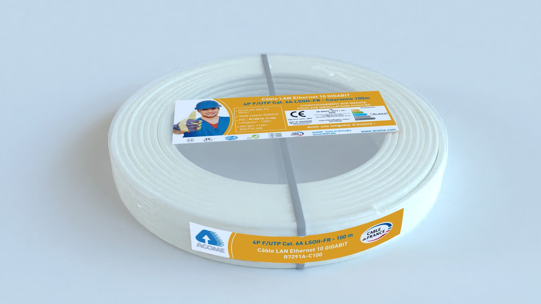 Acome - Câble F/UTP cat6A LSOH-FR 4P couronne 100m ivoire Dca - R7291A-C100