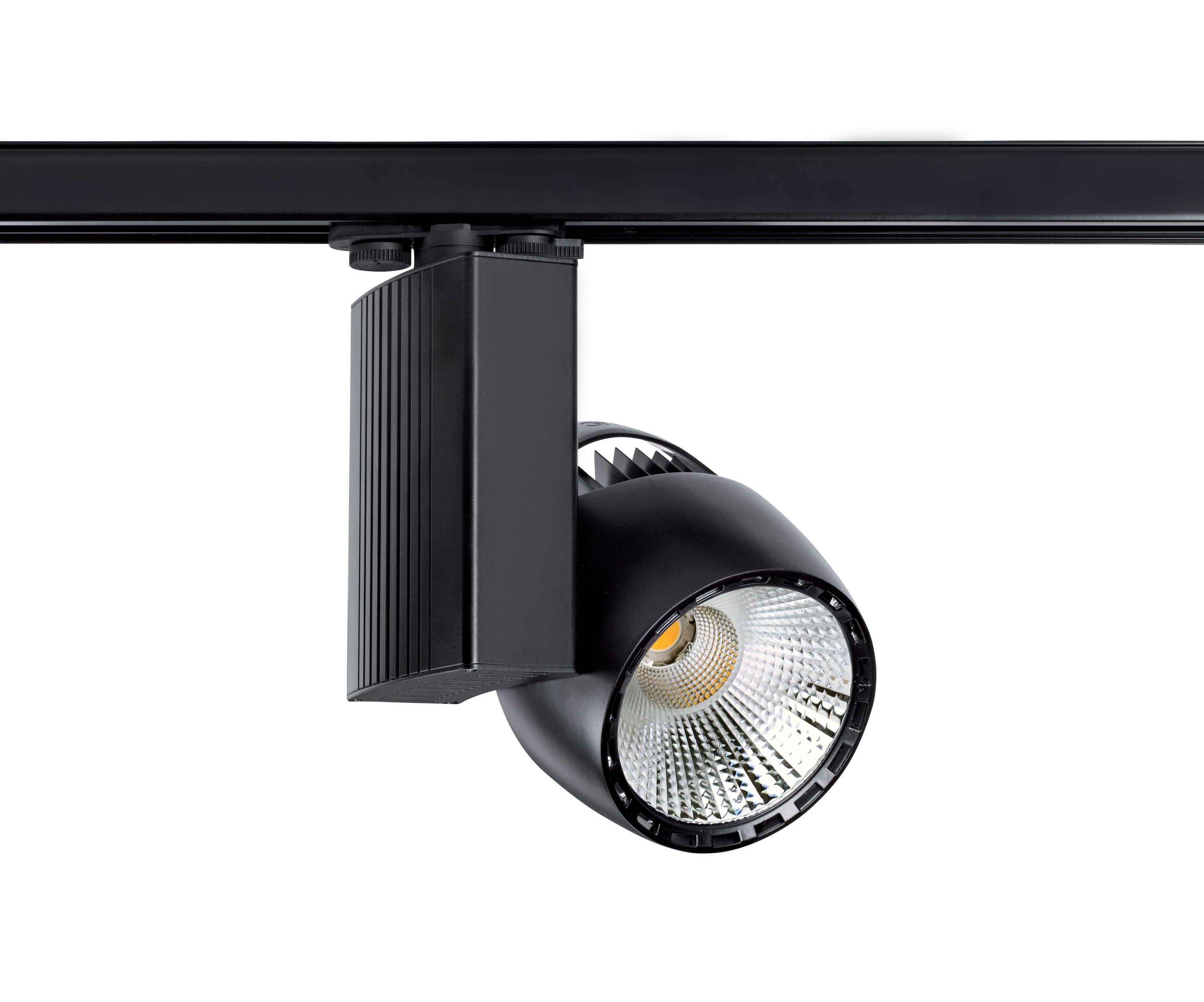 Projecteur LED pour rail 3 allumages 023, noir, faisceau 65°, LED intégrée non démontable 42W 3000K 3800 lumens