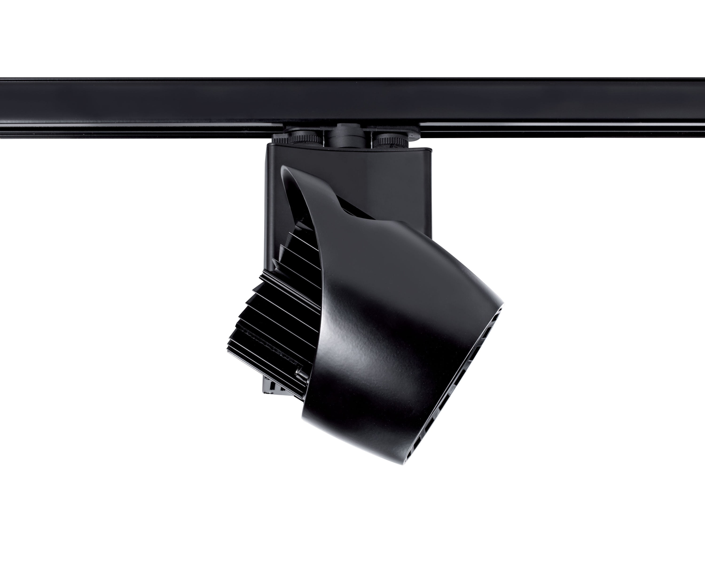 Projecteur sur rail Made in France - IRC>90, SDCM<3 - Flicker Free - Facteur de puissance 0.95, Taux de distorsion harmonique <15% - 100lm/W - Angle de diffusion de 60°, autres options possibles - Température de couleur : 3000K - Couleur de finition : Noir RAL 9011, Mat 30% - Orientation possible sur 360° horizontal et 270° vertical - Driver déporté