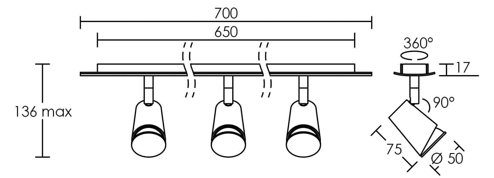 Aric - JUDY B3-Plaf./Appl. 3 spots GU10, noir, a/lpes LED 3,6W 3000K 400lm dimm. incl - 4161