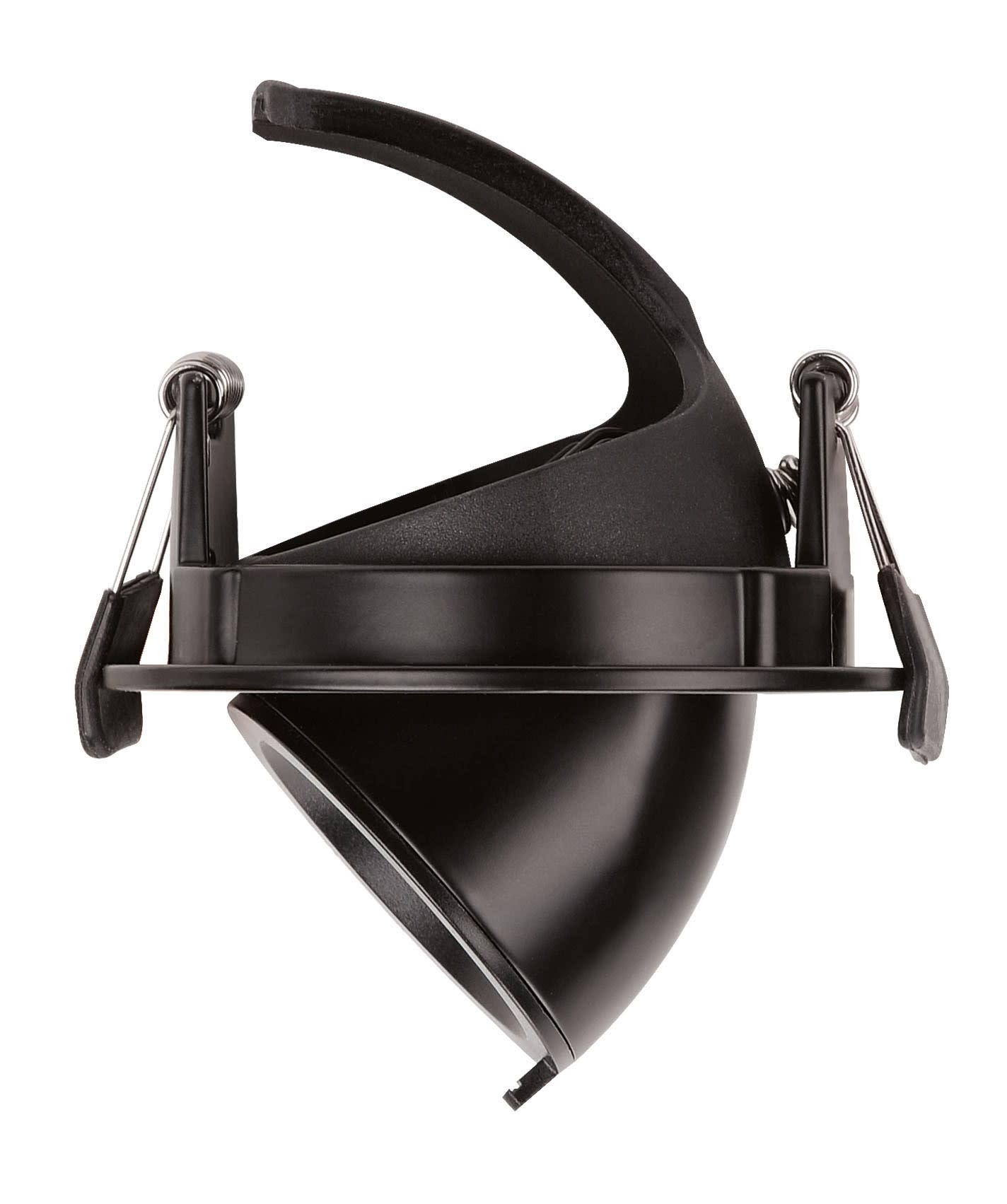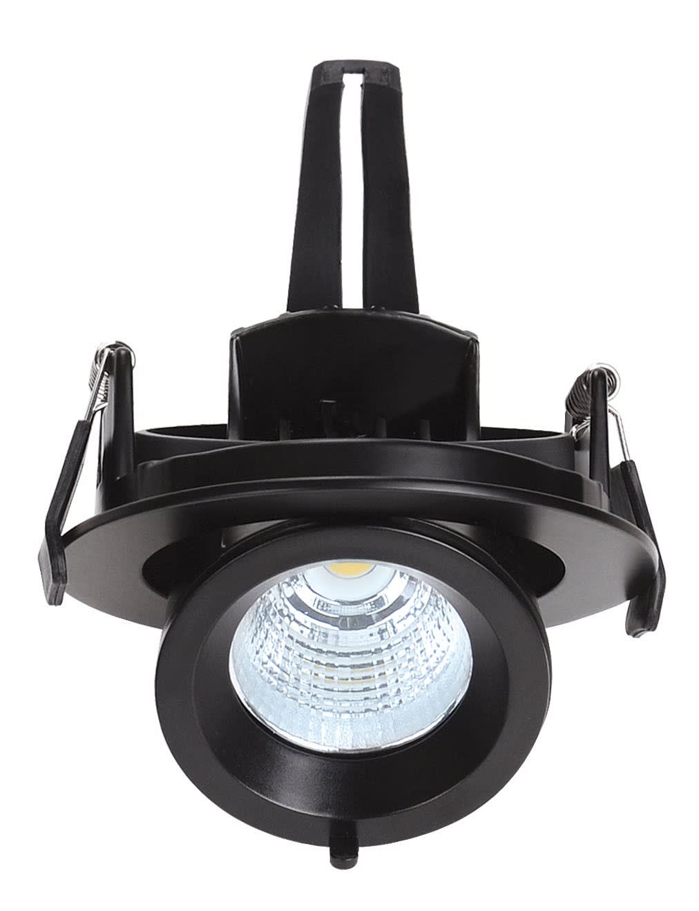 Downlight rond, orientable, en aluminium noir, 50°, LED intégrée 14,4W 3000K 1300 lumens 50000h avec boite de connexion repiquable sans outil