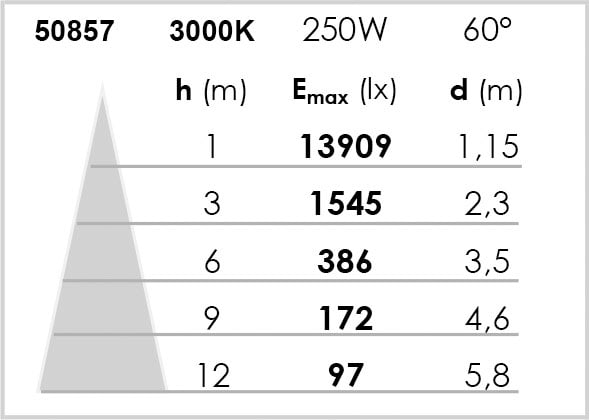 Conçu pour respecter l’arrêté 2018 relatif à la réduction des nuisances lumineuses - IP65, pour une résistance accrue en extérieur - Vitre en verre trempé IK08 - Capacité de résistance de 480H au brouillard salin - Efficacité : 27500lm pour 250W, soit 110lm/W - Angle symétrique 60° - Durée de vie de 50'000 heures - Alimentation intégrée - Cable H05RN-F 3G 1mm2 en longueur 0.2m fourni - Dimensions et poids restreint pour une installation discrète