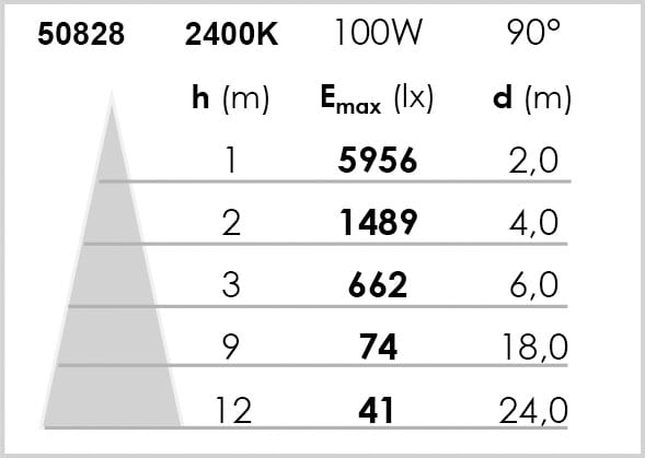 Conçu pour respecter l’arrêté 2018 relatif à la réduction des nuisances lumineuses - IP65, pour une résistance accrue en extérieur - Vitre en verre trempé IK08 - Capacité de résistance de 480H au brouillard salin - Efficacité : 11000lm pour 100W, soit 110lm/W - Angle symétrique 90° - Durée de vie de 50'000 heures - Alimentation intégrée - Cable H05RN-F 3G 1mm2 en longueur 0.2m fourni et connecteur étanche IP68 pour raccordement rapide. - Dimensions et poids restreint pour une installation discrète