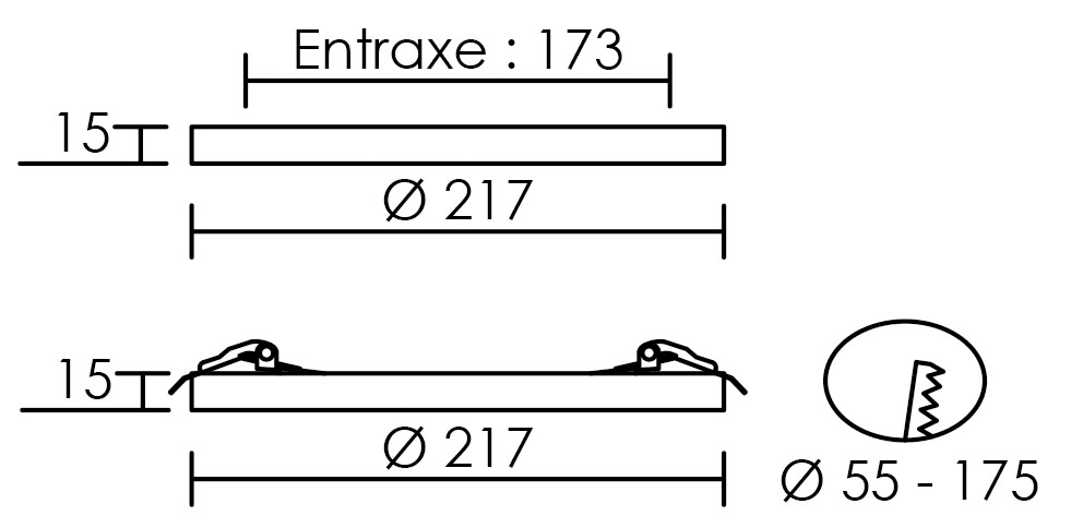 Le downlight LED Universal est une solution d'éclairage pratique pour de nombreuses situations, aussi bien pour une installation neuve qu'en rénovation. Son système de fixation lui permet d'être installé de manière encastrée ou en saille. Avec ses ressorts réglables, il pourra couvrir un trou allant de 55 à 175mm. Dimmable, son intensité peut varier à l'aide d'un variateur. Sa fonction CCT permet de choisir au moment de l'installation, ou en commutation sur l'interrupteur, la température de couleur entre un Blanc Chaud, un Blanc naturel et un Blanc Froid. Des collerettes nickel ou noire sont également disponibles en option pour vous permettre d'accorder l'UNIVERSAL à votre décoration intérieure.