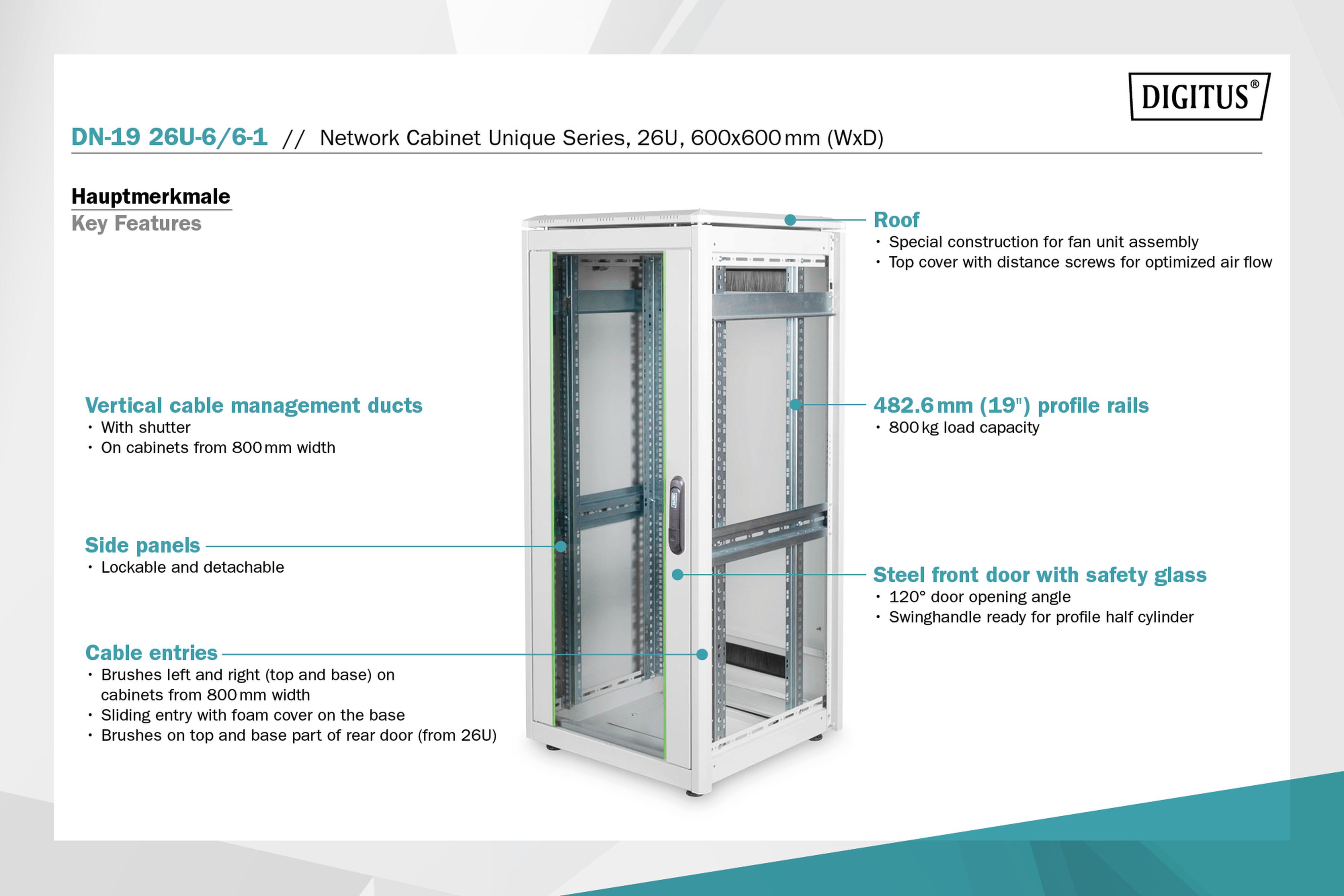 Assmann Electronic - Armoire réseau 26U, Unique 1342x600x600 mm, couleur gris (RAL 7035) - DN-19 26U-6/6-1