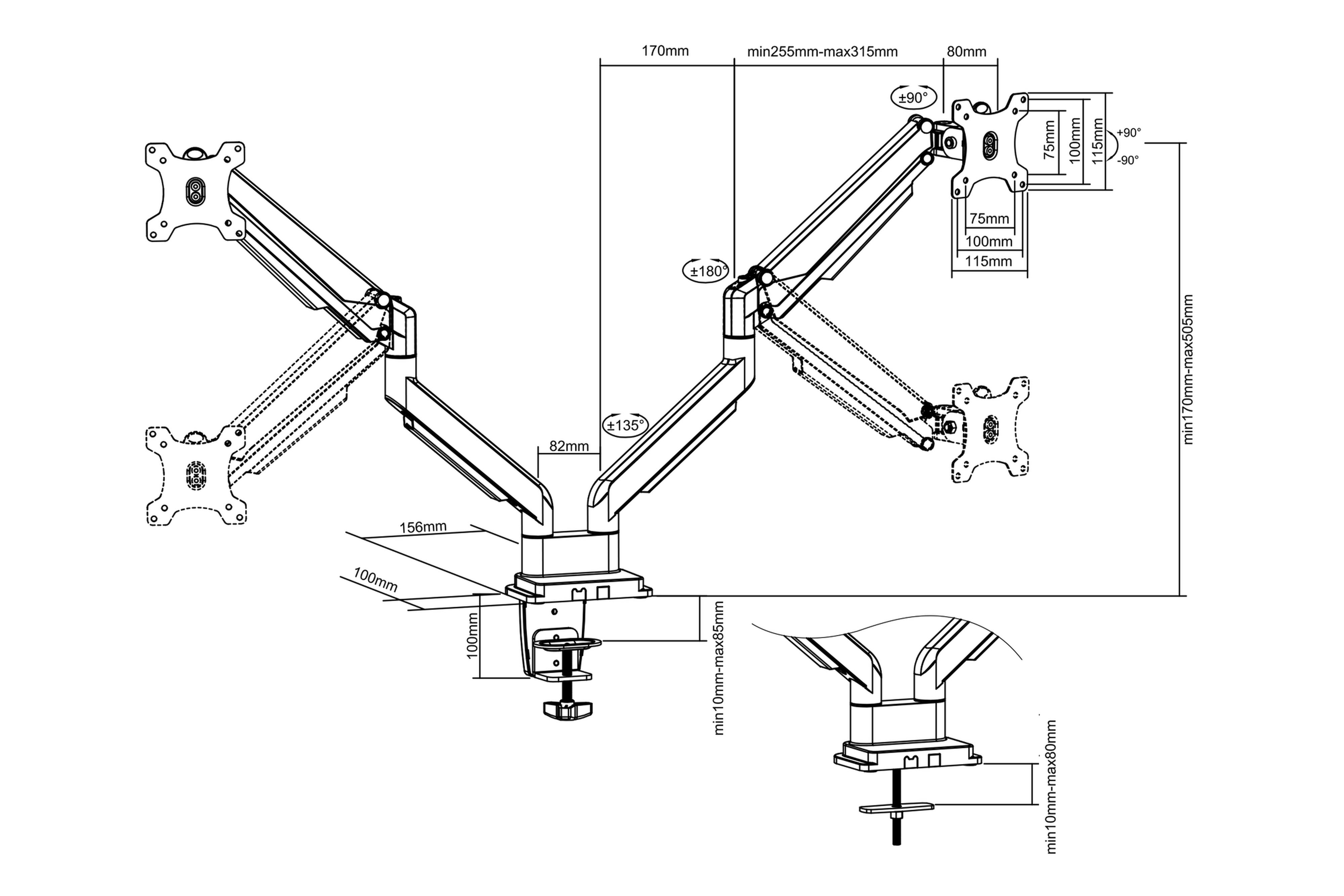 Assmann Electronic - Double écran ressort à gaz et fixation par serrage, 17-32", 2x 9 kg (max.), noir - DA-90395