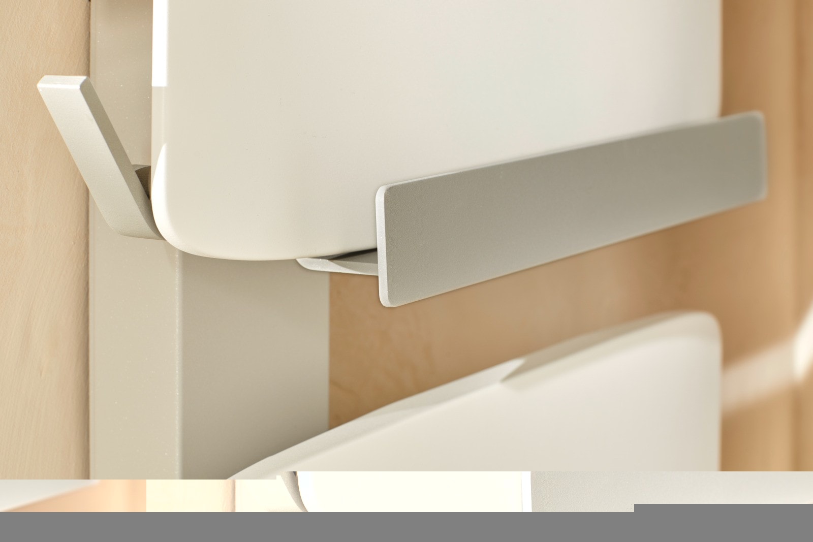 - Patère rabattable et barre fixe livrées dans l’emballage (installation au choix)