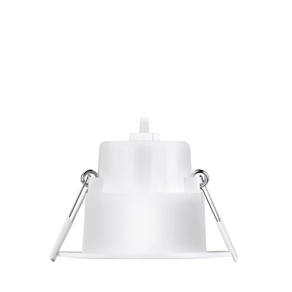 Spot encastré LED thermoplastique faible consommation pour bâtiment neuf ou rénovation Lentille polycarbonate multifacette EnFiniti pour un faible éblouissement et une apparence halogène Driver compact intégré pour une installation facile dans les plafonds étroits Version fixe IP44 - Etanche à l'air Protection contre les surtensions de 1,5 kV Garantie 3 ans