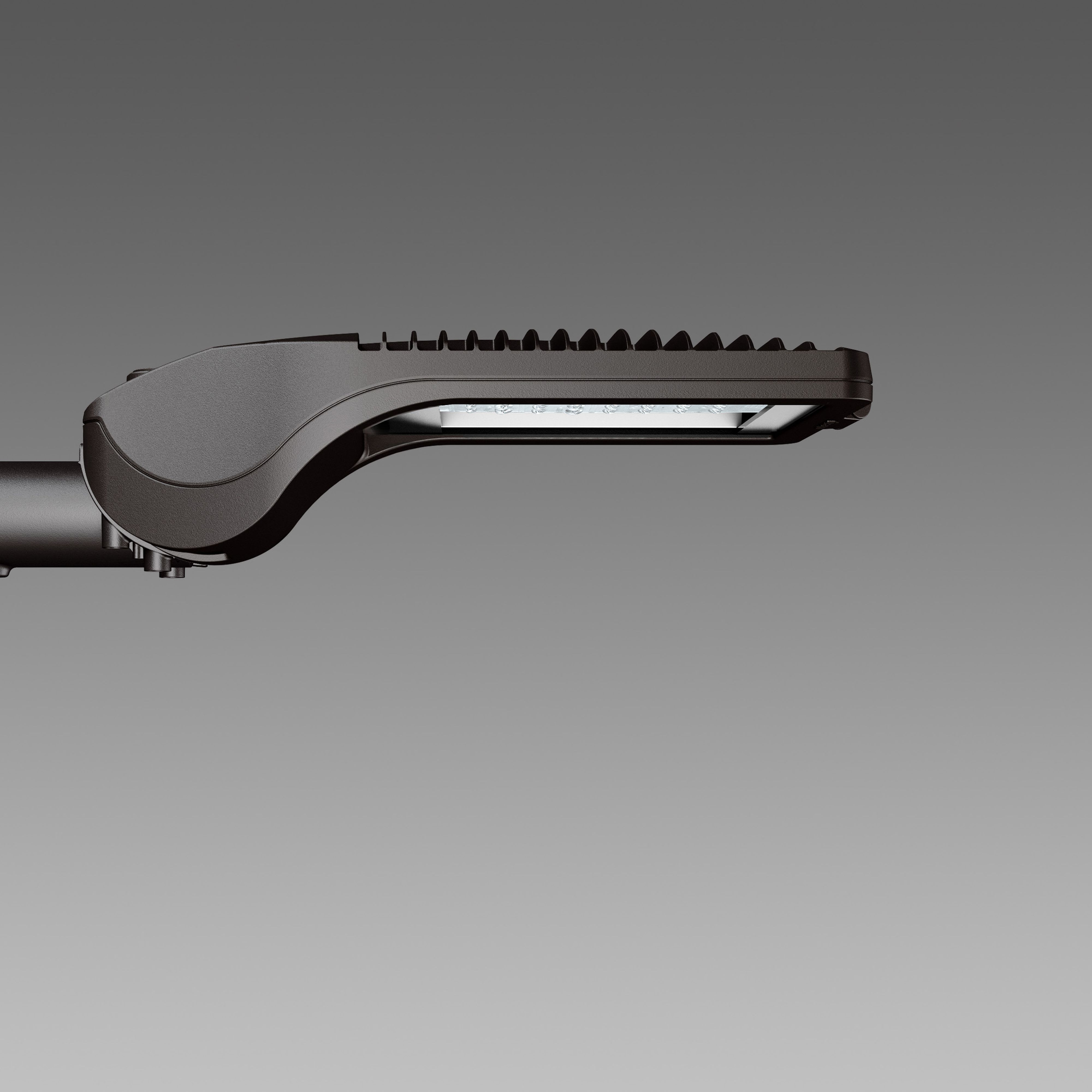 Lanterne d'éclairage publicCorps et châssis : en aluminium moulé sous pression, avec une très petite surface d’exposition au vent. Ailettes de refroidissement incorporées dans le cache. Raccord mât : en aluminium moulé sous pression, avec griffes de serrage pour donner à l’armature plusieurs inclinaisons. Orientable de 0° à 15° pour fixation sur la crosse, et de 0° à 10° pour fixation en sommet de mât. Inclinaison par 5 degrés. Parfait pour les mâts de 63-60 mm de diamètre.Diffuseur : verre trempé transparent ép. 4 mm résistant aux chocs thermiques et mécaniques (UNI-EN 12150-1 : 2001)Peinture : Le cycle de peinture poudre standard se compose d’une phase de prétraitement superficiel du métal et d’une passe de peinture poudre polyester en couche simple, résistante à la corrosion et au brouillard salin, stabilisée aux rayons UV.Équipement : Contrôle automatique de la température à l’intérieur du dispositif avec réarmement automatique. Protection contre les impulsions conforme à la norme EN 61547 pour la platine Led et son driver.
