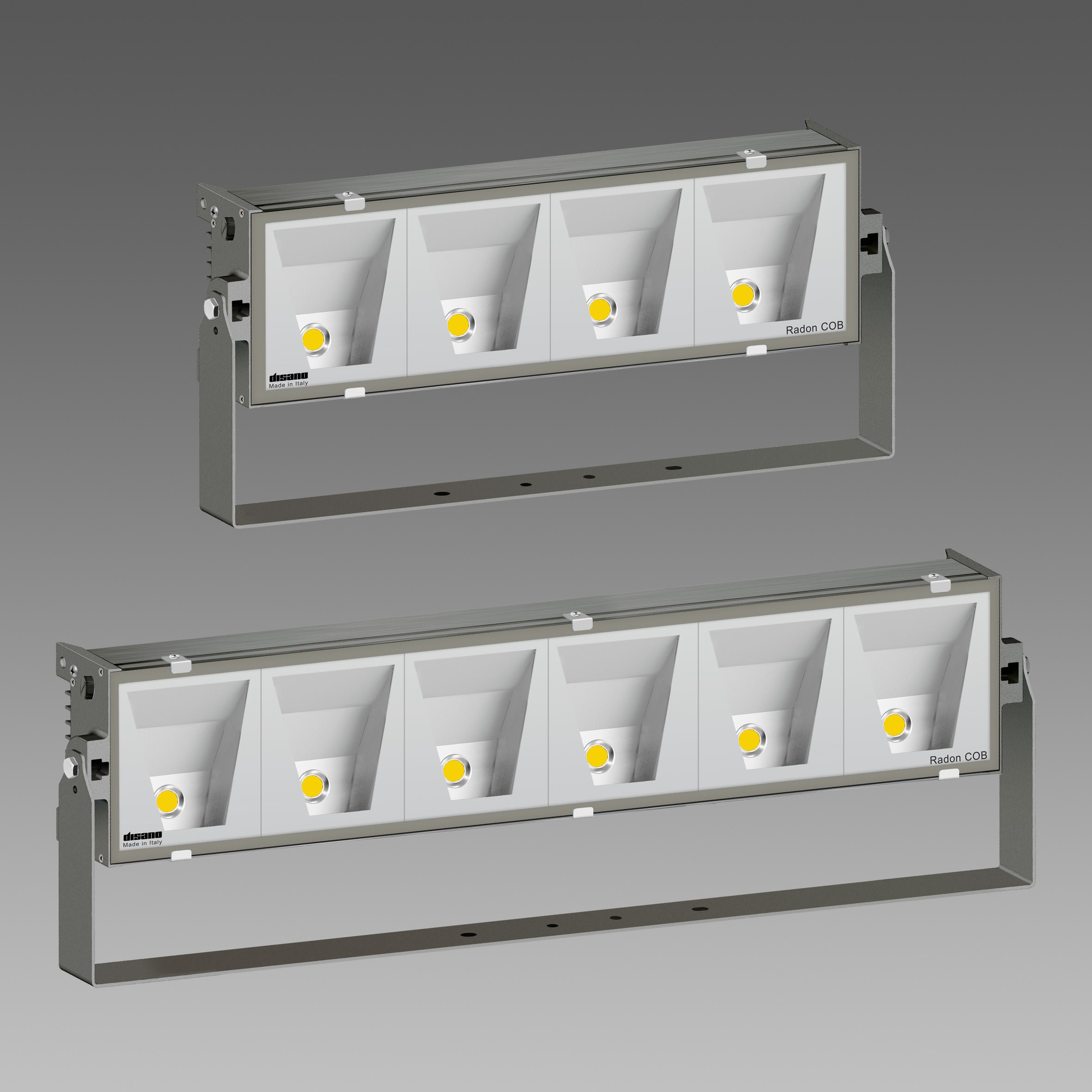 La famille des projecteurs Radon LED comprend des versions avec optiques à fasceau intensif, symétrique et asymétrique.Déclinaion en 1 module, 2 modules ou 3 modules.Corps : aluminium extrudé avec embouts en aluminium moulé sous pression.Reflecteur : en aluminium satiné, de haute rendement et anti-reflets.Diffuseur : verre trempé épaisseur 4 mm résistant aux chocs thermiques et mécaniques (essais NF EN 12150-1/2001).Peinture : le cycle de peinture poudre standard se compose d'une phase de prétraitement superficiel du métal et d'une passe de peinture poudre polyester, résistante à la corrosion et au brouillard salin, stabilisée aux rayons UV.Equipement : étrier en acier galvanisé peint; joint en caoutchouc siliconé ; visseries externes en acier inox ; vanne de circulation d'air. Connecteur étanche pour une installation rapide sans besoin d'ouvrir l'appareil.Alimentation: alimentation 220-240V 50/60Hz, avec driver IP66 sur luminaire. Protection contre les impulsions conforme à la norme EN 61547 pour la platine Led et son driver.Deux modes de fonctionnement : - Mode différentiel : entre les conducteurs actifs, entre phase et neutre.- Mode commun : entre les conducteurs actifs, phase/neutre et la terre ou le corps du luminaire si celui-ci a une isolation classe II et est installé sur mât métallique. Sur demande : Protection jusqu'à 10kV. Differents systèmes de gestion de l'éclairage au point lumineux ou centralisés avec capteurs de présence/luminosité.Peinture conforme à la norme NF EN ISO 9227 - Essais de corrosion en atmosphères artificielles, pour atmosphères agressives.