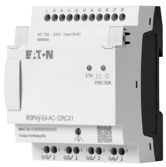 Avec les modules logiques easyE4 de la série Moeller d'Eaton, la mise en œuvre des tâches de commande est désormais rapide et efficace, que ce soit dans les applications industrielles, de bâtiment et de construction spécialisée. Jusqu'à 11 extensions d'E/S ainsi qu'une large gamme de tensions sont disponibles.Les nouveaux appareils easyE4 sont non seulement faciles à utiliser, mais ils offrent également une programmation simple et flexible.Avec quatre langages de programmation différents, le logiciel easySoft est intuitif et facile à utiliser.L'ajout d'autres fonctions, telles que le serveur web intégré et l'interface Ethernet, font de l'easyE4 un module logique performant compatible avec l'architecture des systèmes IIoT.