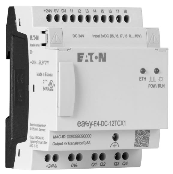 Avec les modules logiques easyE4 de la série Moeller d'Eaton, la mise en œuvre des tâches de commande est désormais rapide et efficace, que ce soit dans les applications industrielles, de bâtiment et de construction spécialisée. Jusqu'à 11 extensions d'E/S ainsi qu'une large gamme de tensions sont disponibles.Les nouveaux appareils easyE4 sont non seulement faciles à utiliser, mais ils offrent également une programmation simple et flexible.Avec quatre langages de programmation différents, le logiciel easySoft est intuitif et facile à utiliser.L'ajout d'autres fonctions, telles que le serveur web intégré et l'interface Ethernet, font de l'easyE4 un module logique performant compatible avec l'architecture des systèmes IIoT.