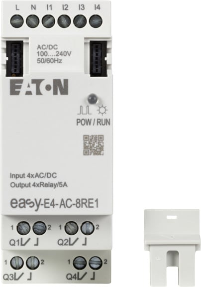 Avec les modules logiques easyE4 de la série Moeller d'Eaton, la mise en œuvre des tâches de commande est désormais rapide et efficace, que ce soit dans les applications industrielles, de bâtiment et de construction spécialisée. Jusqu'à 11 extensions d'E/S ainsi qu'une large gamme de tensions sont disponibles.Les nouveaux appareils easyE4 sont non seulement faciles à utiliser, mais ils offrent également une programmation simple et flexible.Avec quatre langages de programmation différents, le logiciel easySoft est intuitif et facile à utiliser.L'ajout d'autres fonctions, telles que le serveur web intégré et l'interface Ethernet, font de l'easyE4 un module logique performant compatible avec l'architecture des systèmes IIoT.