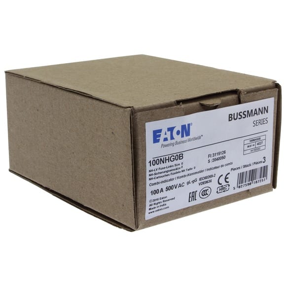 Eaton Industries France SAS - NH FUSE 100A 500V GG/GL SIZE 0 - 100NHG0B
