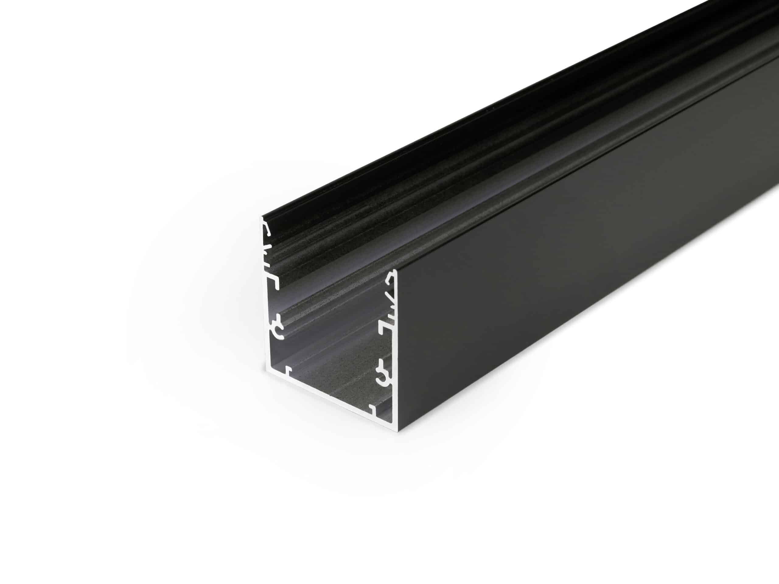 PR2010C10 PROFILE EN MATIERE ALUMINIUM SAILLIE DE COLORIS NOIR D'UNE LONGUEUR DE 2M AVEC DIFFUSANT POLYCARBONATE CLIPANT