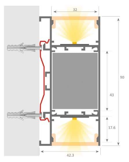 PR6006 PROFIL ALUMINIUM DOUBLE ECLAIRAGE GRIS LONGUEUR DE 3M AVEC DIFFUSANT POLYCARBONATE