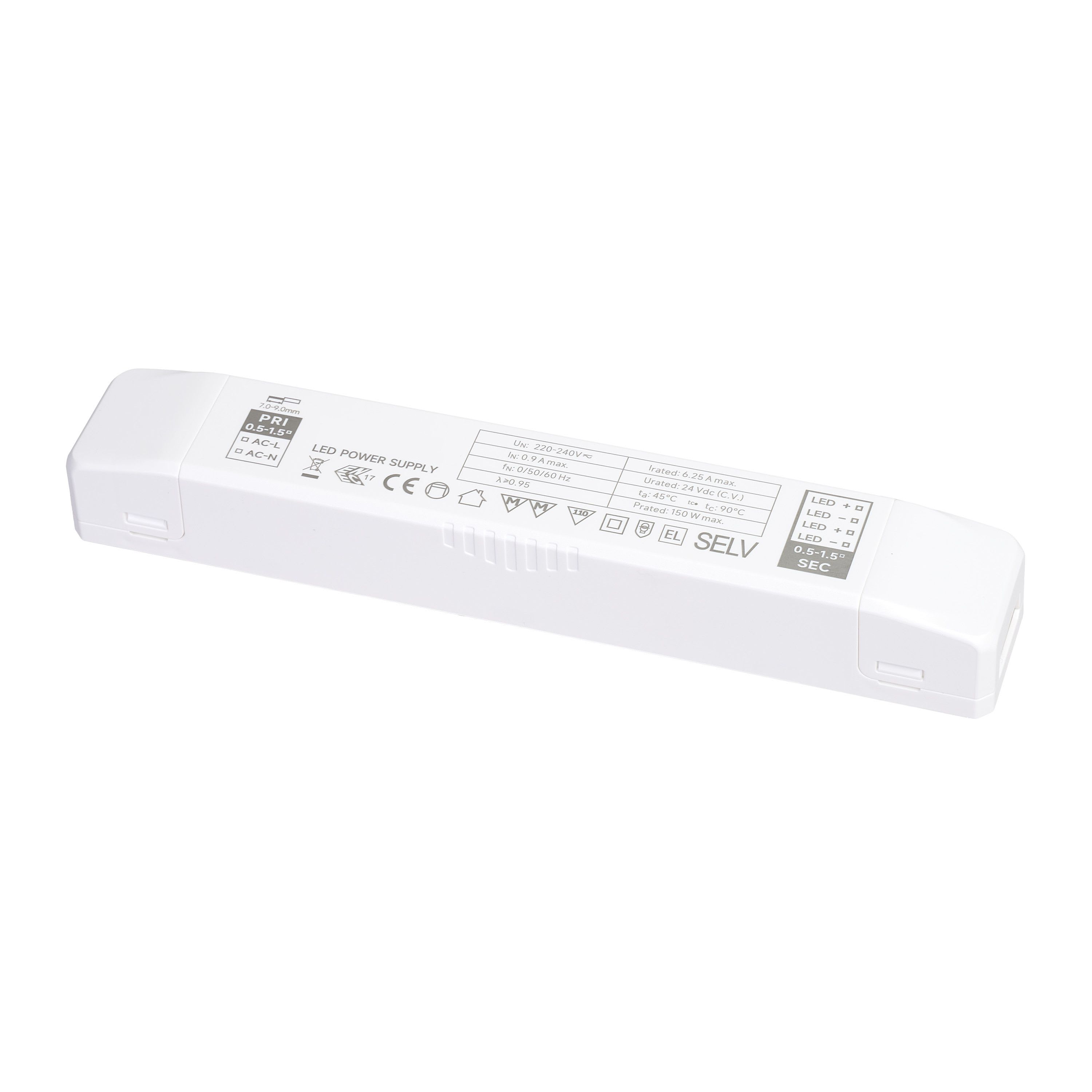 Alimentation EUROPOLE IZI'TRONIC 24 150W. Convertisseur électronique pour éclairage LED tension constante. Tension d'entrée : 220-240VAC. Tension de sortie : 24VDC. Courant d'entrée : 0,9A. Courant de sortie : 6,25A. Classe de protection : II, IP20. Non dimmable. Nombre d'entrée(s) primaire(s) : 1, nombre de sorties physiques : 2. Températures de fonctionnement : -20°C/+45°C.