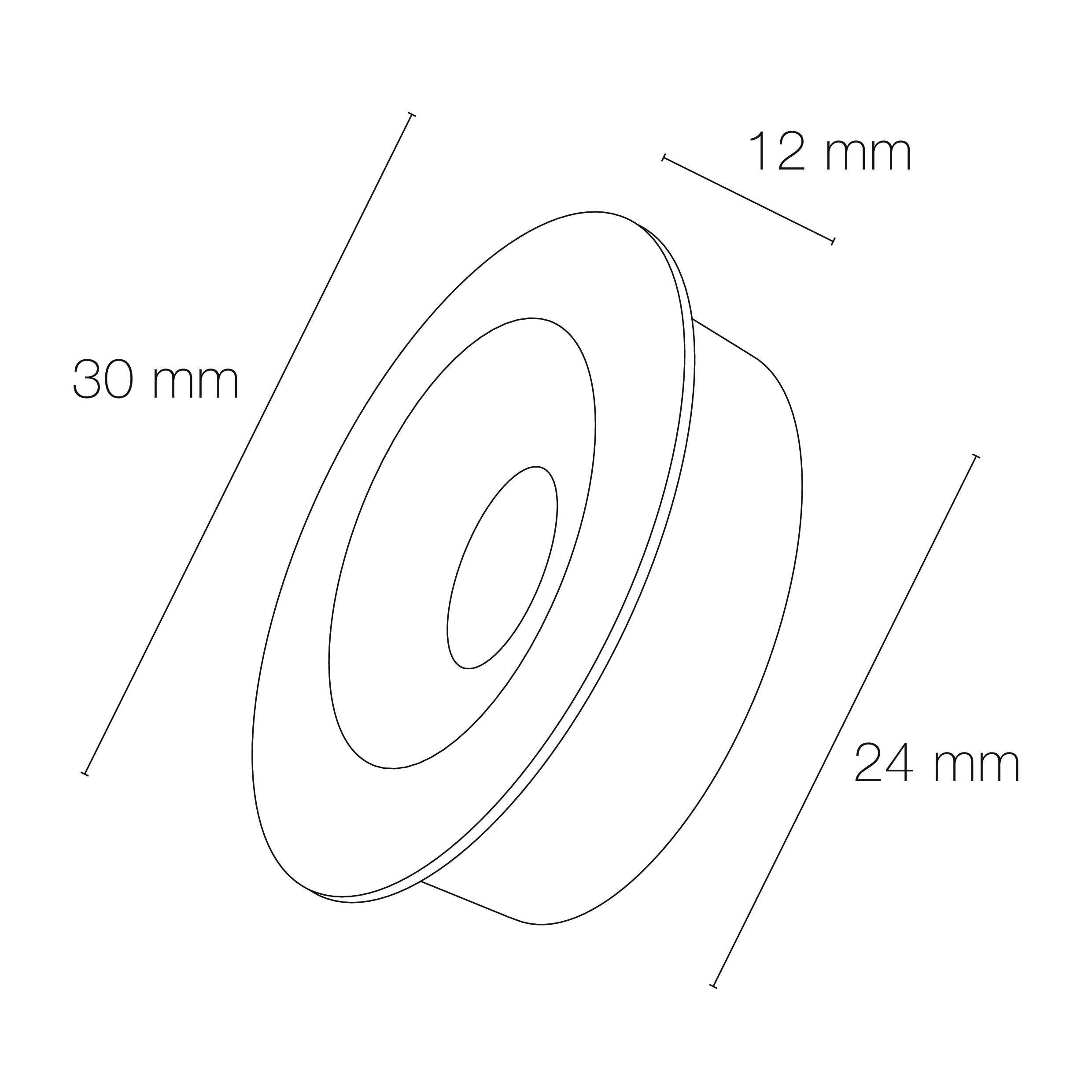Encastré mur & plafond EUROPOLE BALI LED 3 rond, fixe, aluminium brossé, blanc 6000K, IRC>70, 1W, 46lm (46lm/W), optique transparente symétrique 30°, 350mA. Classe de protection III, IP20, compatible isolants : non. Durée de vie : 20000h. Dimmable : Non. Dimension collerette : diamètre 30mm. Diamètre d'encastrement : 24mm. Matériau : aluminium. Températures de fonctionnement : -20°C/+40°C. Walkover : Non.