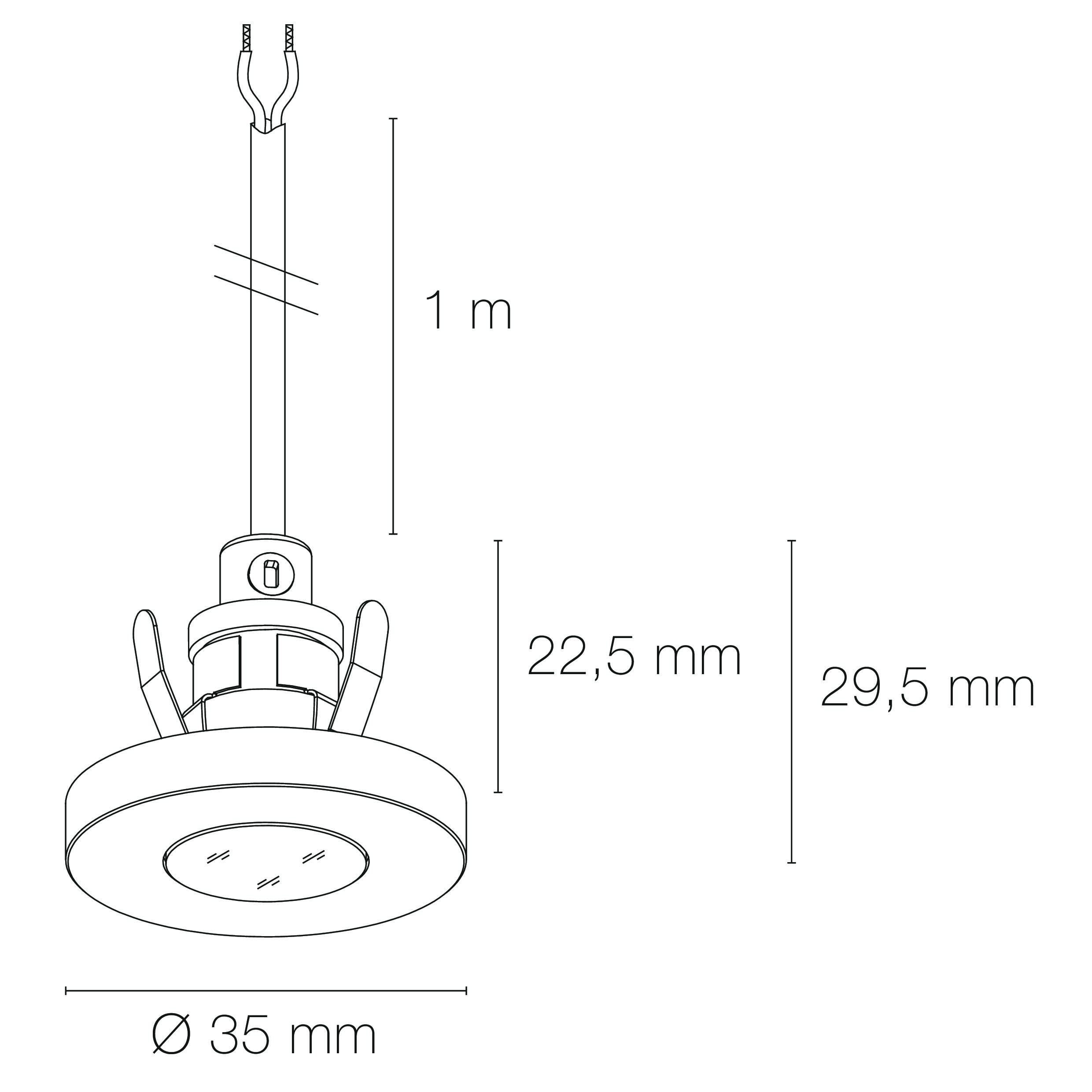 Encastré mur & plafond EUROPOLE BALI LED 5 rond, fixe, blanc, blanc 3000K, IRC>80, 1,2W, 76lm (63,33lm/W), optique diffusante symétrique 28°, 350mA. Classe de protection III, IP54, compatible isolants : non, câblé de 1m, HO5RN-F 2x0,5mm². Durée de vie : 30000h. Dimmable : Non. Dimension collerette : diamètre 35mm. Diamètre d'encastrement : 18mm. Matériau : inox. Températures de fonctionnement : -20°C/+40°C. Walkover : Non.