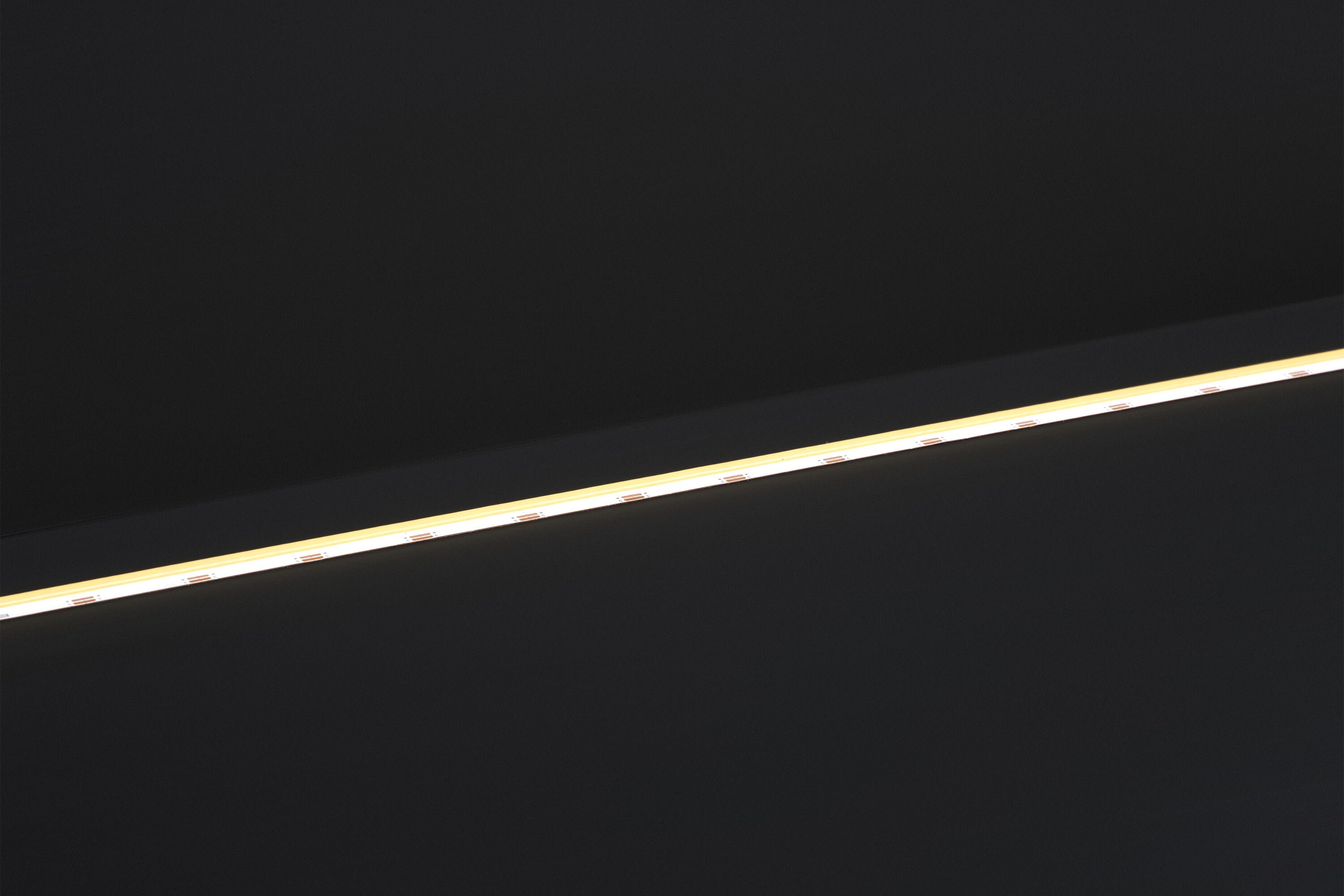 Bandeau Led EUROPOLE sur-mesure au centimètre COB CHROMA TW IP20 : TW 2700K-6500K, IRC>90, SDCM3, 14W/m, 1515lm/m (108lm/W), 608LED/m, 24VDC. Largeur du bandeau : 10mm. Classe de protection III. Sécable tous les 26,3mm. Longueur maximum d'un seul tenant : 5m. IP20, câble non fourni : 20AWG 3x0,5mm, durée de vie : 50000h. Dimmable : oui, variation avec alimentation/contrôleur compatible (non inclus). Installation sur profil aluminium impérative.