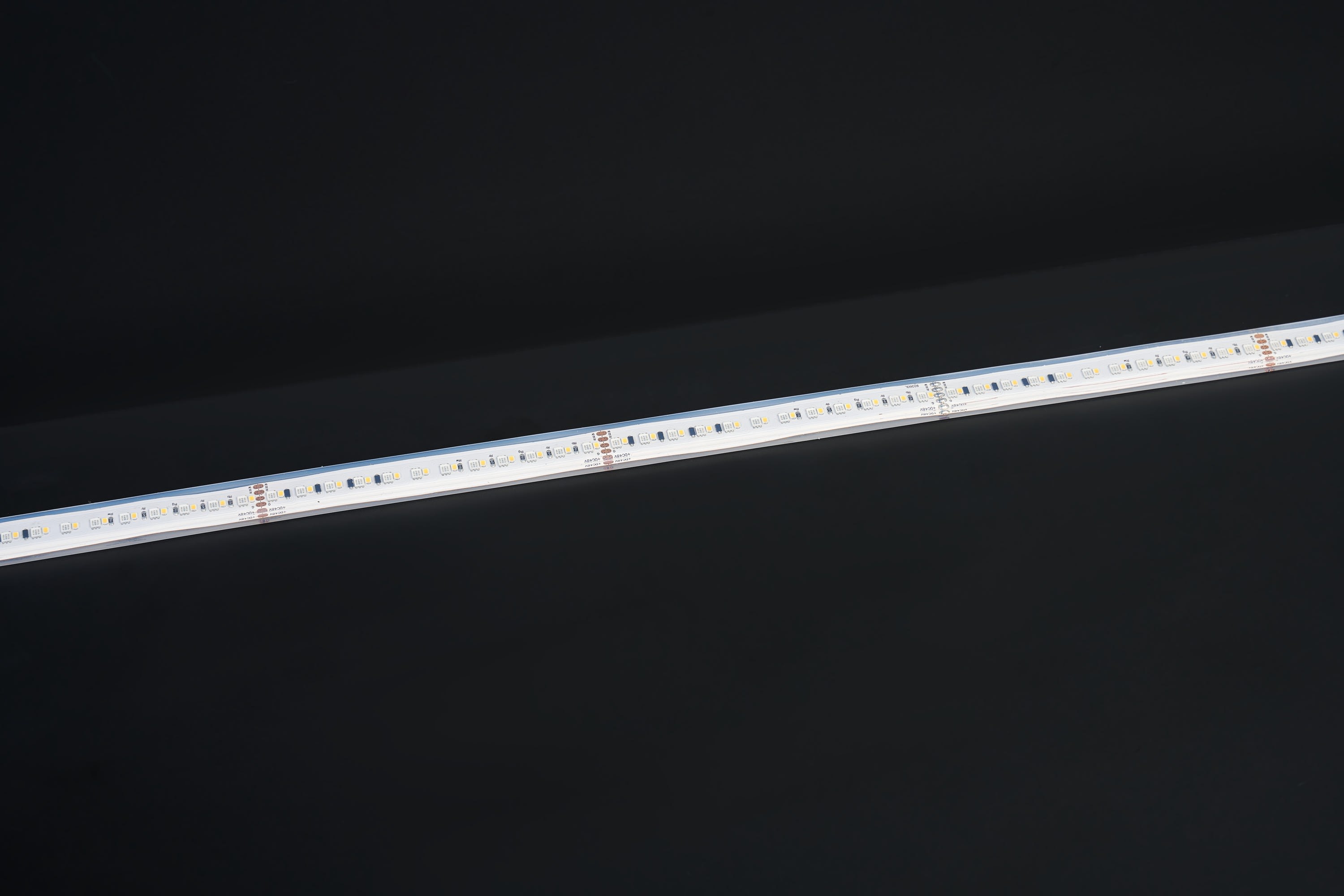 Bandeau Led EUROPOLE sur-mesure au centimètre VOLTA 48 CHROMA IP67 : RGBW 3000K, IRC>90, SDCM5, 19,2W/m, 1021lm/m (53lm/W), 240LED/m, 48VDC. Largeur du bandeau : 14mm. Classe de protection III. Longueur maximum d'un seul tenant : 10m. IP67, câble non fourni : H05RN-F 5x0,5mm², durée de vie : 50000h. Dimmable : oui, variation avec alimentation/contrôleur compatible (non inclus). Installation sur profil aluminium ou via clips de fixation (non inclus). Pour assurer l'étanchéité, les bandeaux IP67/IP68 ne sont pas sécables.