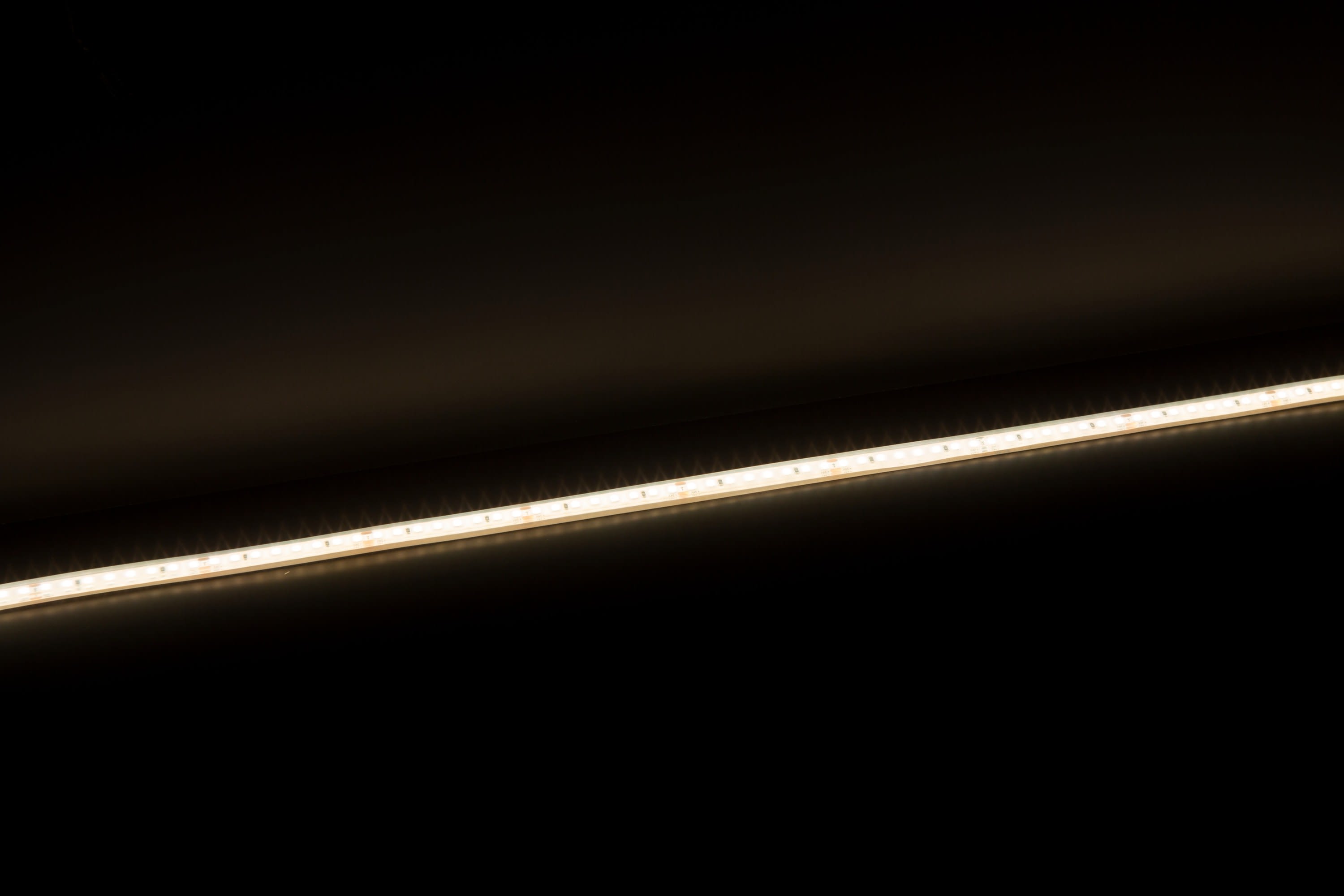 Bandeau Led EUROPOLE sur-mesure au centimètre VOLTA PRO 4,8W/m IP68 : blanc 3000K, IRC90, SDCM3, 4,8W/m, 727lm/m (151lm/W), 128LED/m, 24VDC. Largeur du bandeau : 10,5mm. Classe de protection III. Longueur maximum d'un seul tenant : 5m. IP68, câble non fourni : H05RN-F 2x0,5mm², durée de vie : 50000h. Dimmable : oui, variation avec alimentation/contrôleur compatible (non inclus). Installation sur profil aluminium ou via clips de fixation (non inclus). Pour assurer l'étanchéité, les bandeaux IP67/IP68 ne sont pas sécables.
