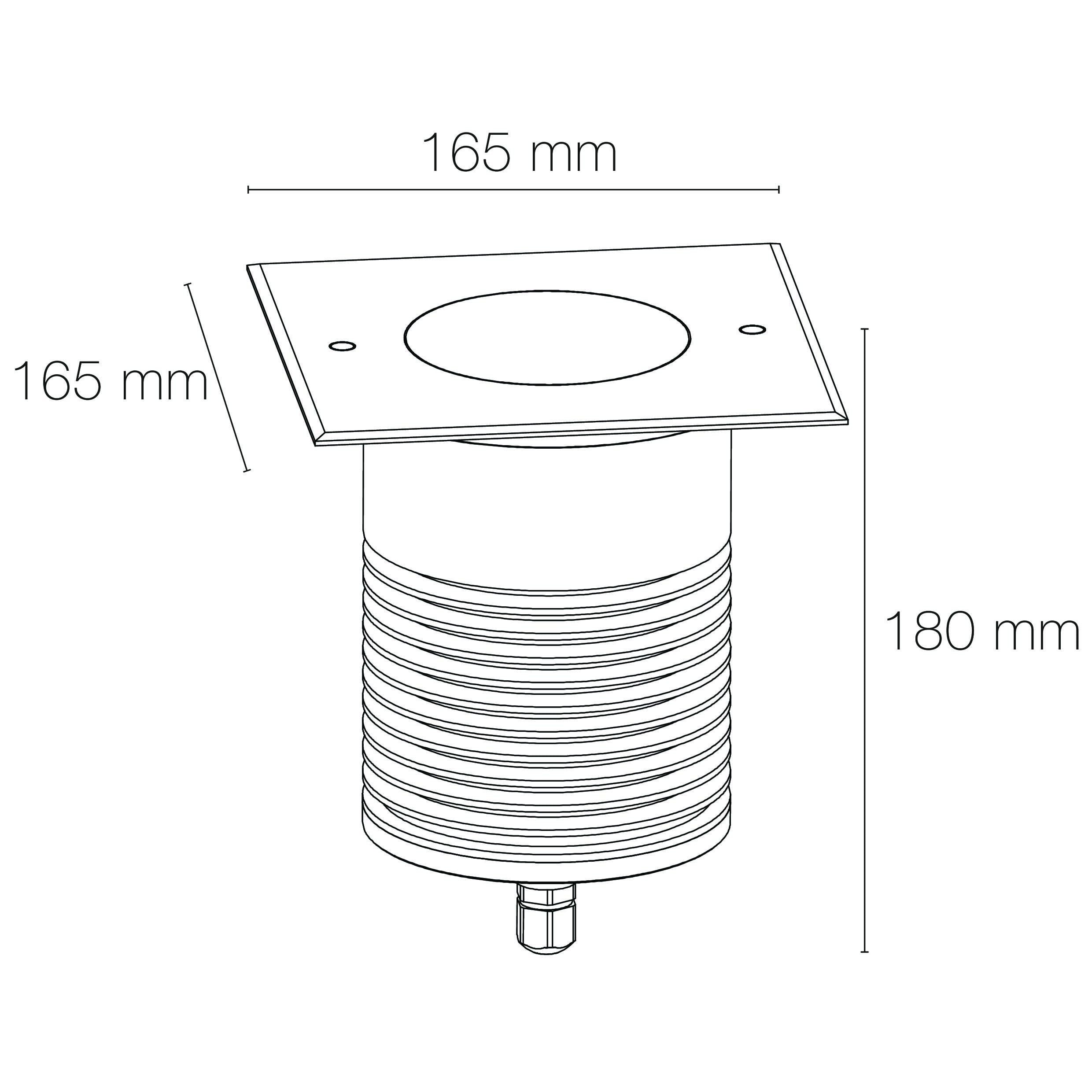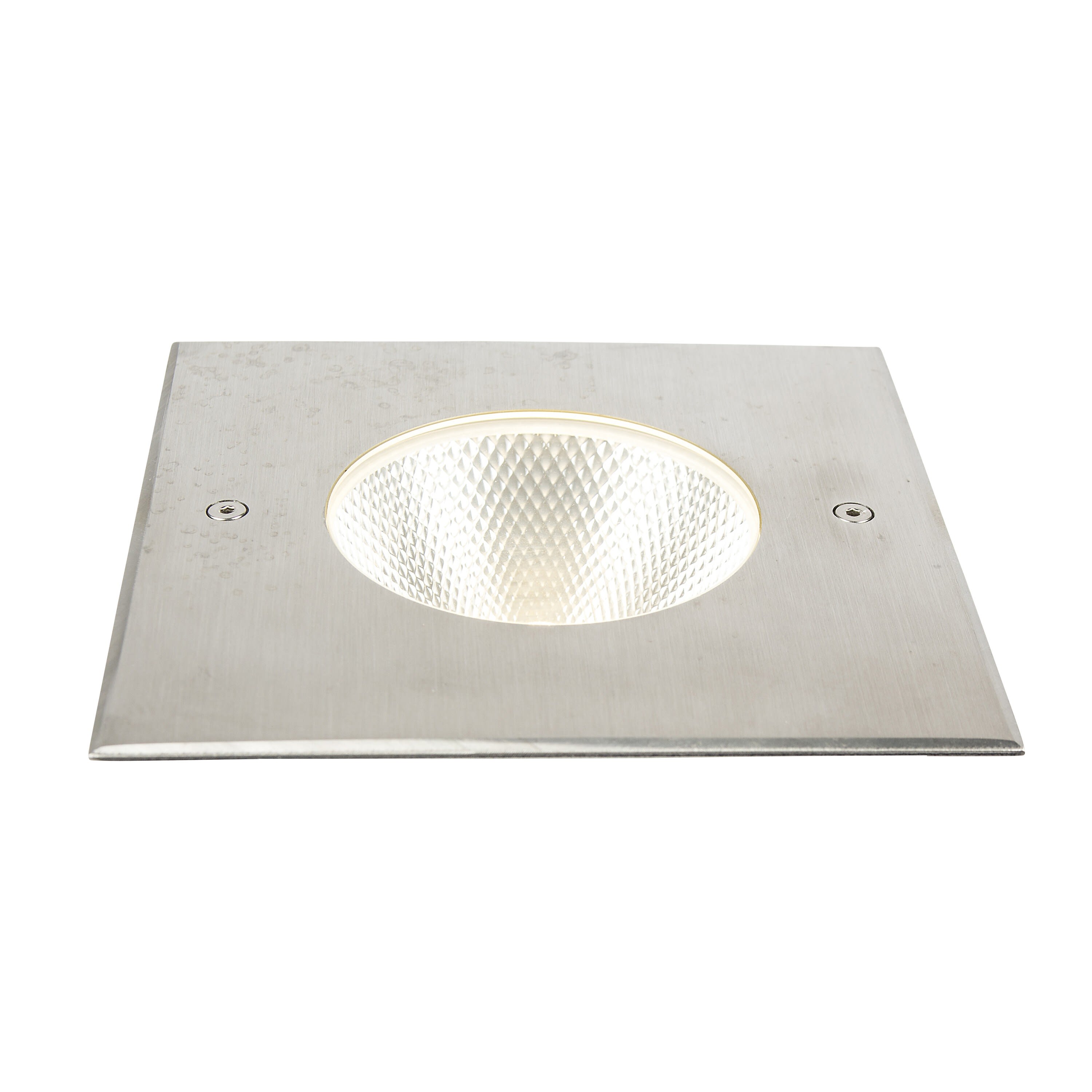 Encastré de sol EUROPOLE COLOSS 4 - 230 carré inox brossé, blanc 4000K, IRC>80, 20W, 767lm (38,35lm/W), verre opale 120° (balisage), 230VAC. Classe de protection I, IP67, IK08, câblé de 0,5m avec connectiques rapides IP68 Plug & Play mâle et femelle, HO5RN-F 3x0,75mm². Durée de vie : 30000h. Dimmable : Non. Dimension collerette : 165x165mm. Diamètre d'encastrement : 142mm. Matériau : corps en aluminium/collerette en inox 316L. Traitement de la surface : corps traité anticorrosion. Températures de fonctionnement : -20°C/+40°C. Walkover : Oui. Driveover : non. Submersible : Non. Diamètre de découpe indiqué pour installation sans pot d'encastrement.