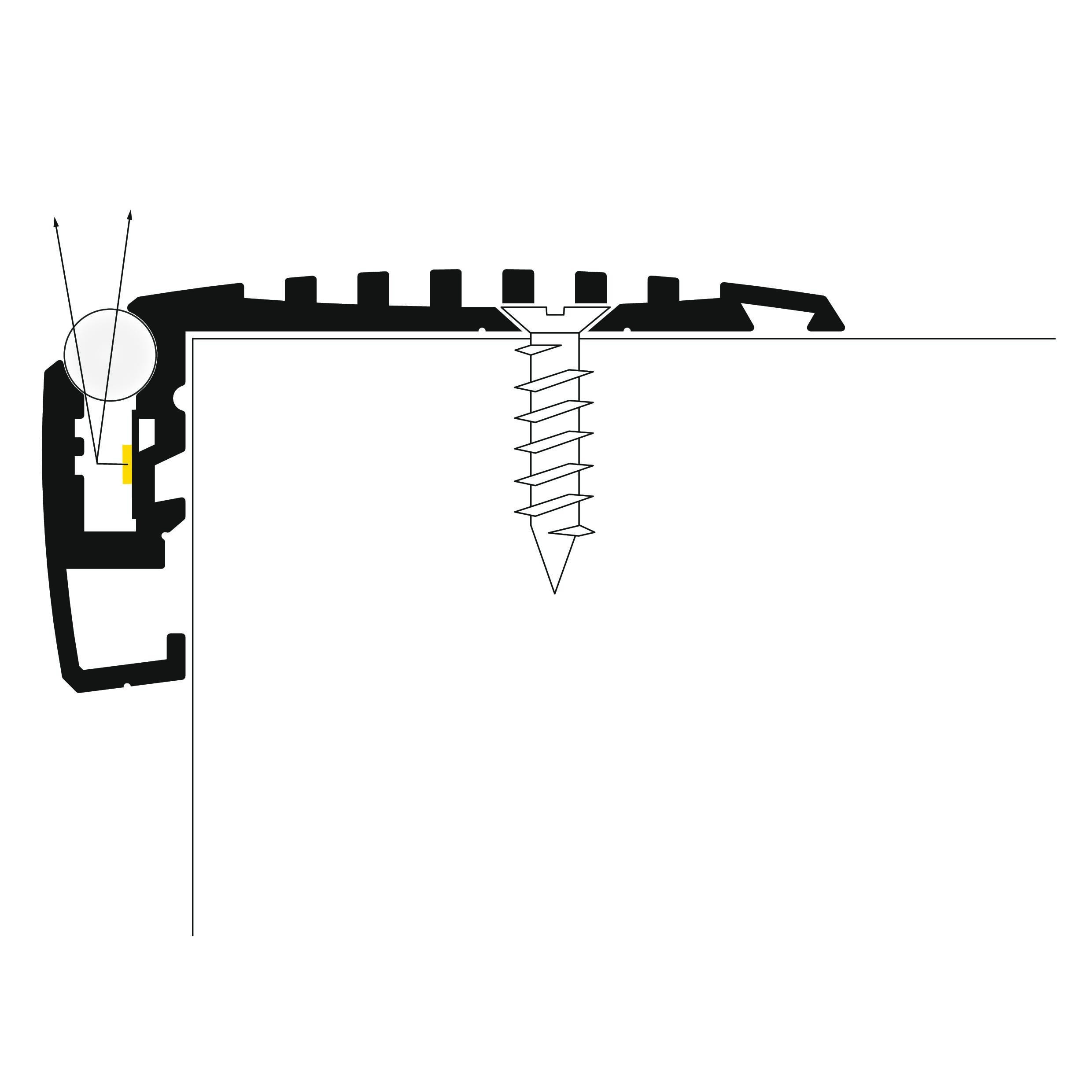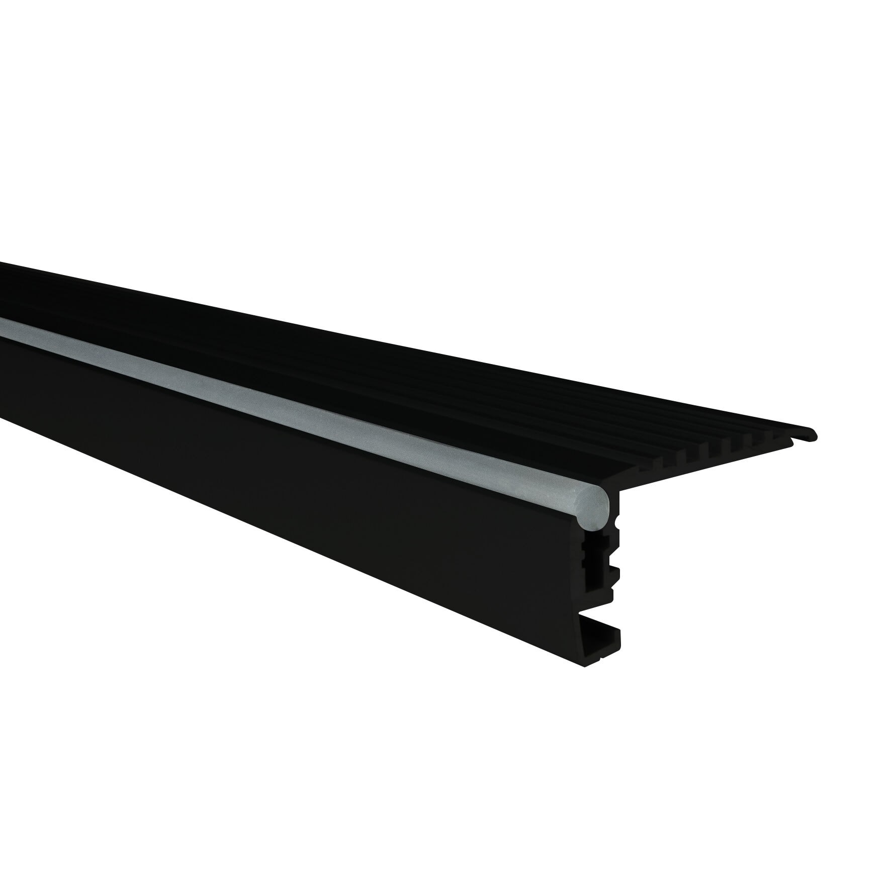 Profil STEKO noir mat 2m. Walkover : Oui. Driveover : non. Mode de pose/installation : nez de marche. Type de fixation : se visse sur le support