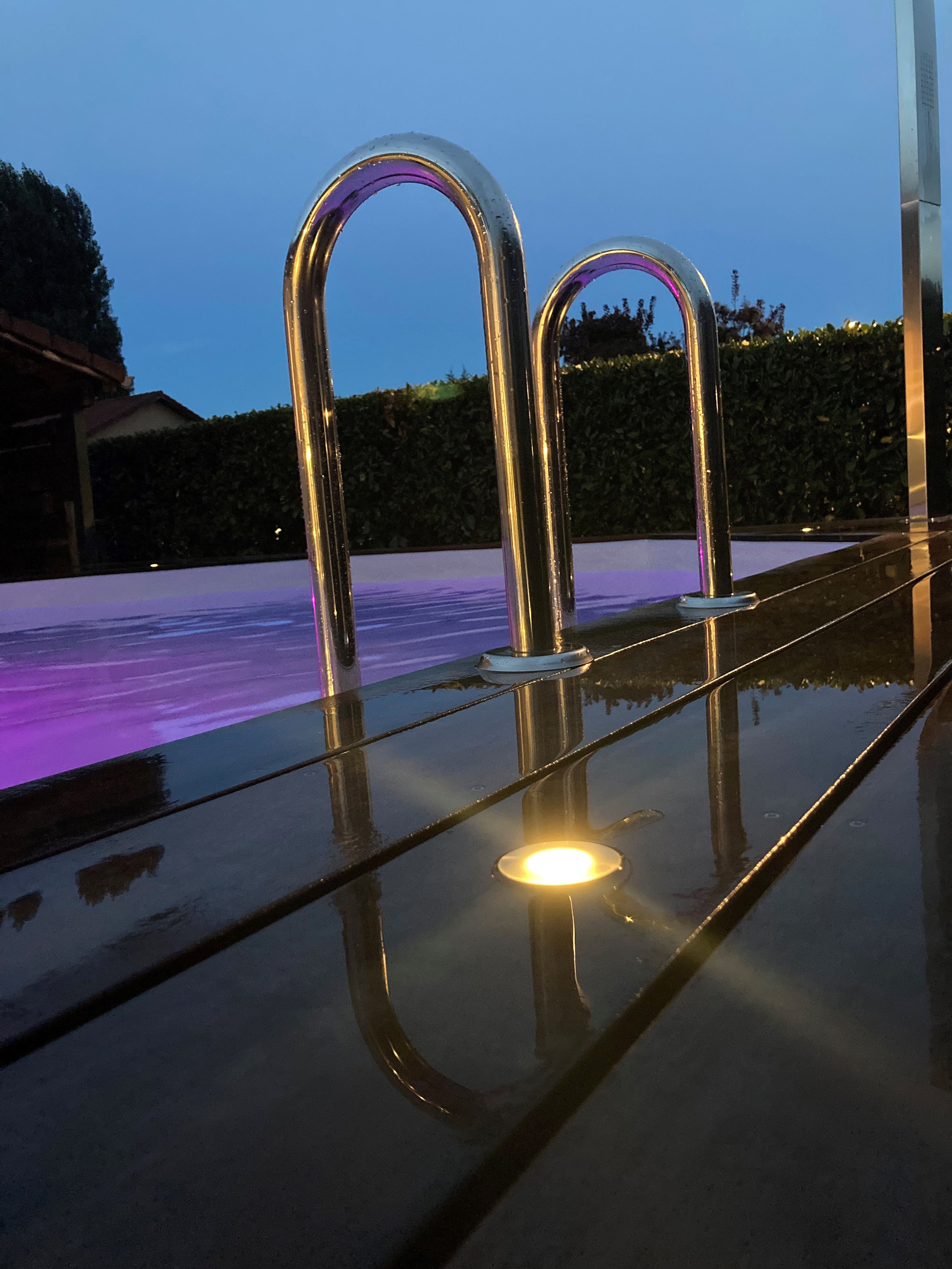 Encastré de sol EUROPOLE ZEPH 1 SLIM - 24 rond bronze, collerette non percée, bleu 2W, verre transparent/nid d'abeille basse luminance, angle 10° (éclairage), 24VDC. Classe de protection III, IP67, IK08, câblé de 0,5m avec connectiques rapides IP68 Plug &
