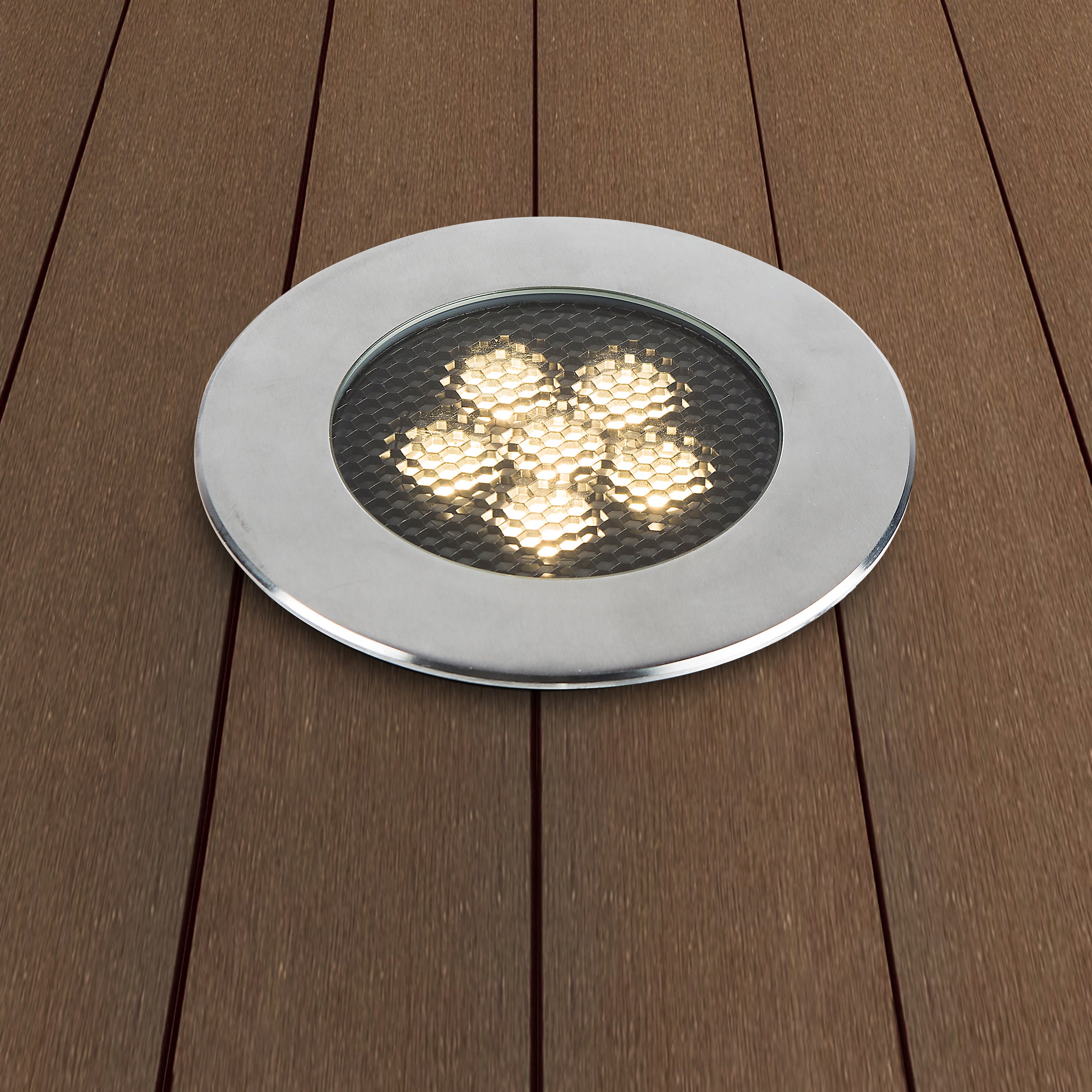 Encastré de sol EUROPOLE ZEPH 3 SLIM - 24 rond inox, collerette non percée, blanc 4000K, IRC>80, 6x2W, 1018lm (85lm/W), verre transparent, angle 0/50° (éclairage), 24VDC. Classe de protection III, IP67, IK08, câblé de 0,5m avec connectiques rapides IP68 Plug & Play mâle et femelle, HO5RN-F 2x1mm². Durée de vie : 30000h. Dimmable : Oui, variation avec alimentation/contrôleur compatible (non inclus). Dimension collerette : diamètre 173mm. Diamètre d'encastrement : 155mm. Matériau : corps en aluminium/collerette et visserie inox 316L. Traitement de la surface : traitement de la collerette par passivation, corps traité anticorrosion. Résistance environnement : garantie corrosion 15 ans. Températures de fonctionnement : -20°C/+40°C. Walkover : Oui. Driveover : Non. Submersible : Non. Installation uniquement en encastré dans terrasse ventilée.